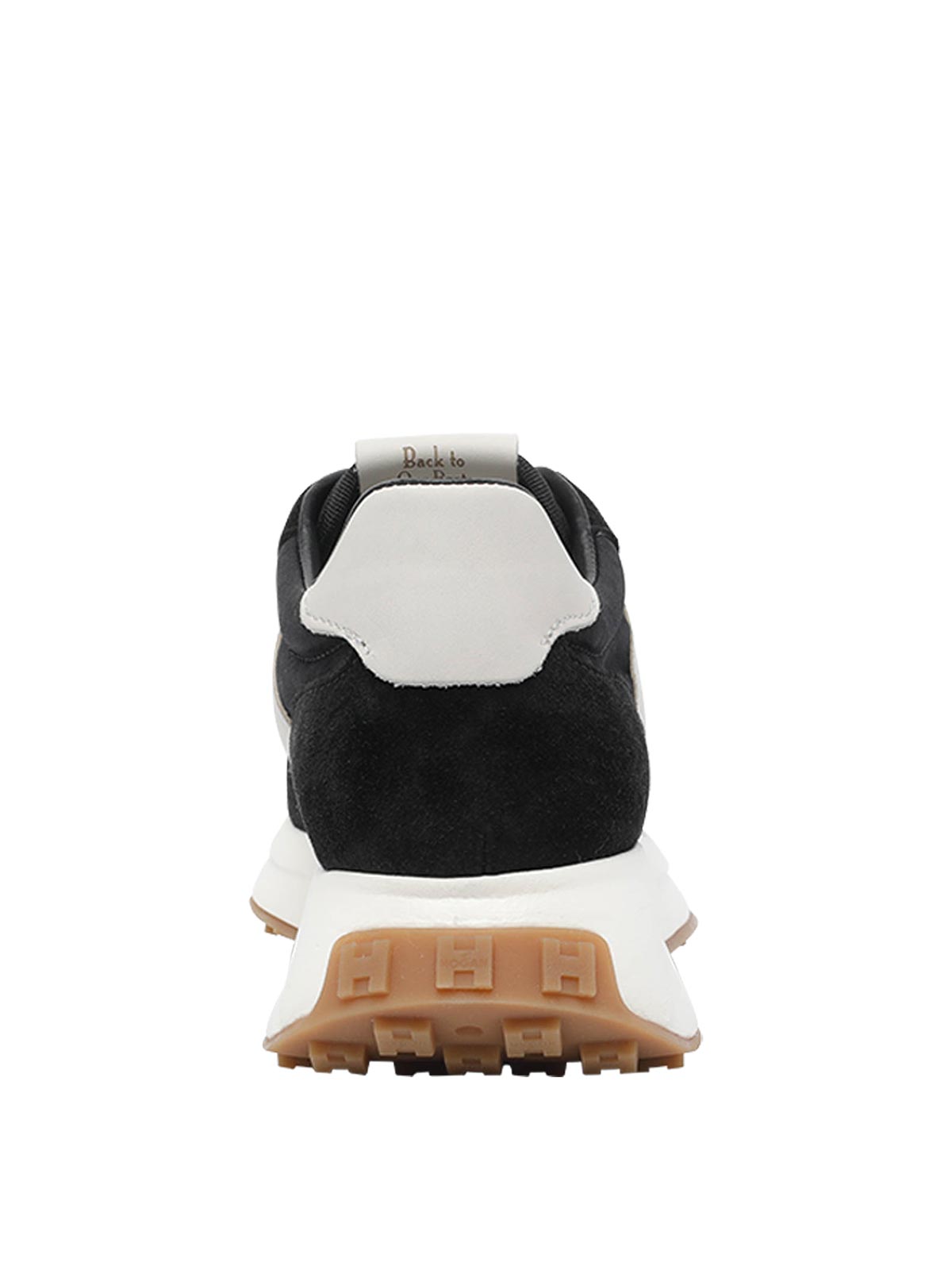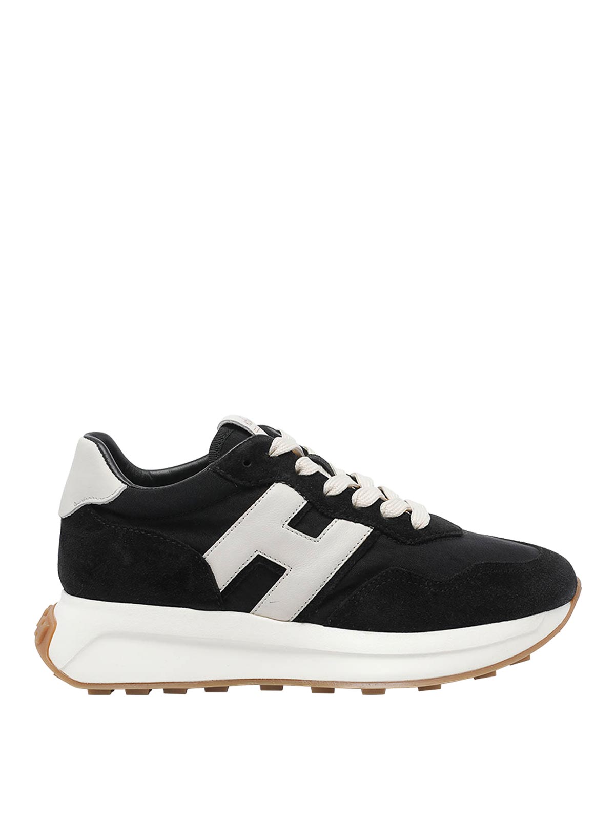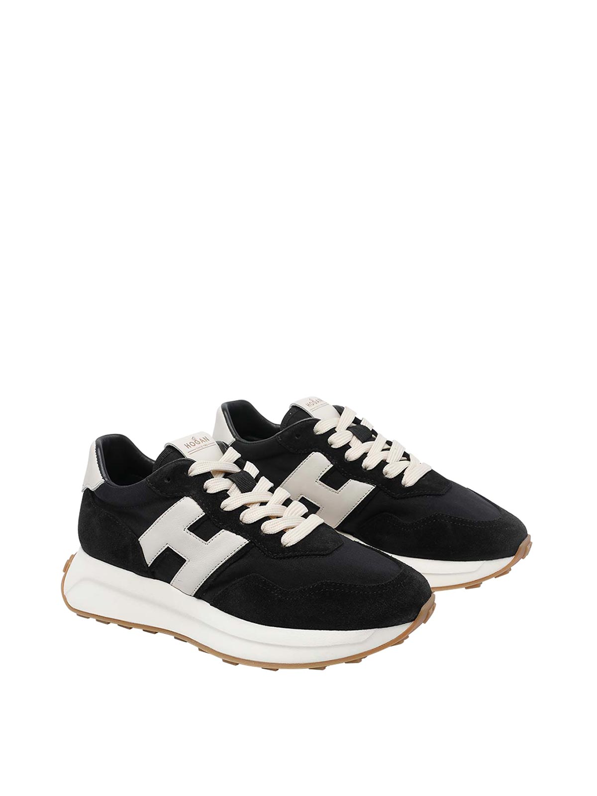 Hogan black h641 sneakers, round toe, suede upper, lateral h logo, laces closure
