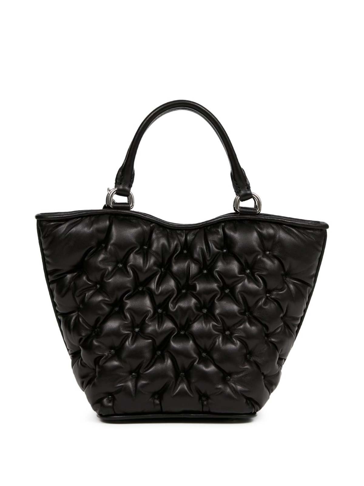 Black magnetic two rolled top handles adjustable detachable shoulder strap quilted