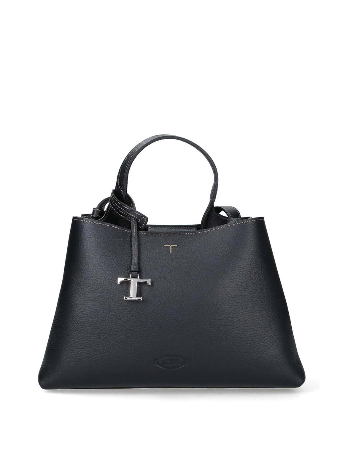 Tod's apa handbag in brown calfskin, top handle, adjustable and removable shoulder strap, t-timeless logo charm in silver metal on the front, embossed logo on the front, two internal zip pockets, three main internal compartments.