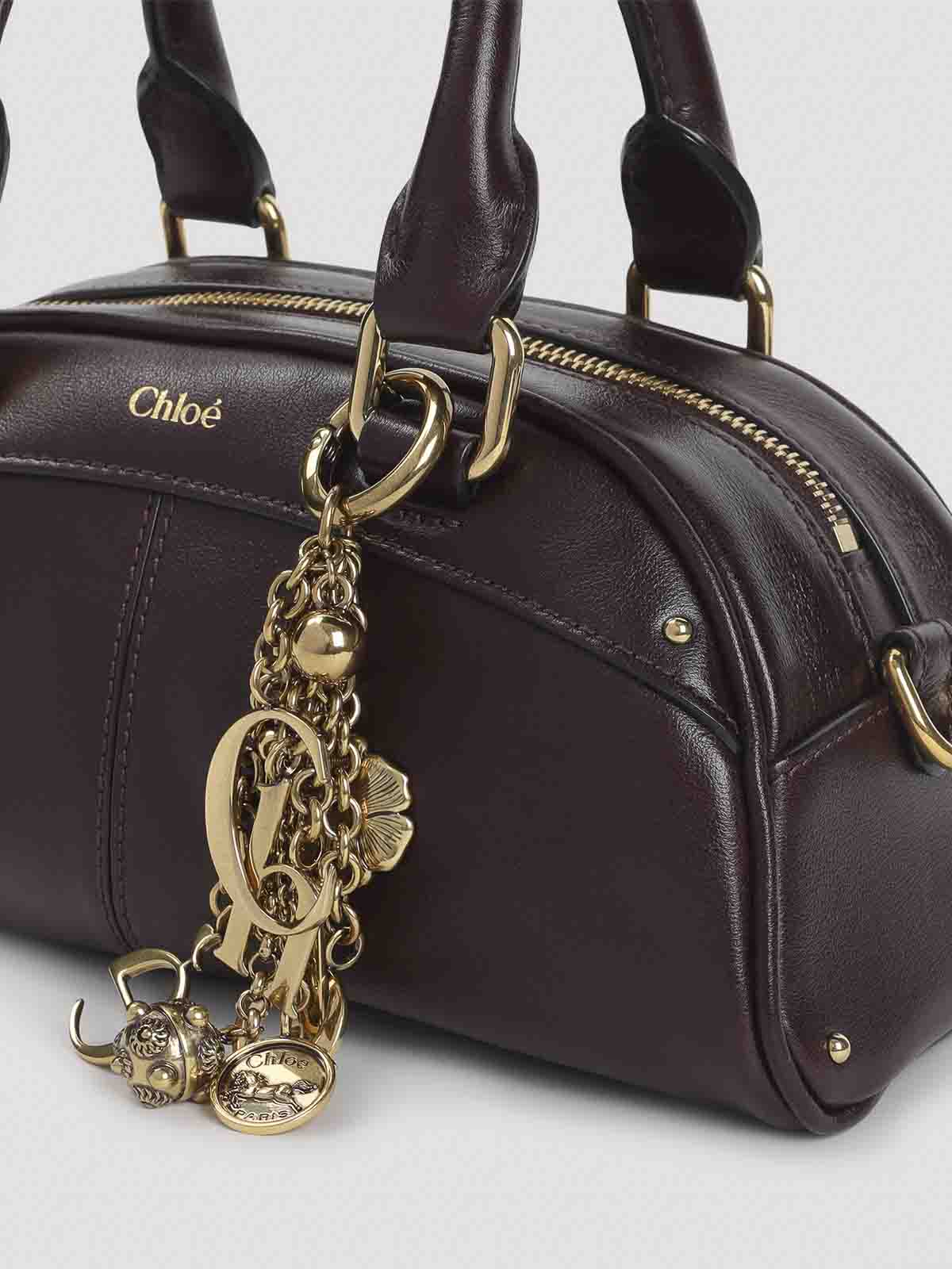 Chloe black calf leather handbag. pure black calf leather handbag, top handles, top zipped fastening, top gold-tone lettering logo, side gold-tone metallic charms with crystal details, adjustable and detachable shoulder strap, one main compartment. gold-tone hardware.