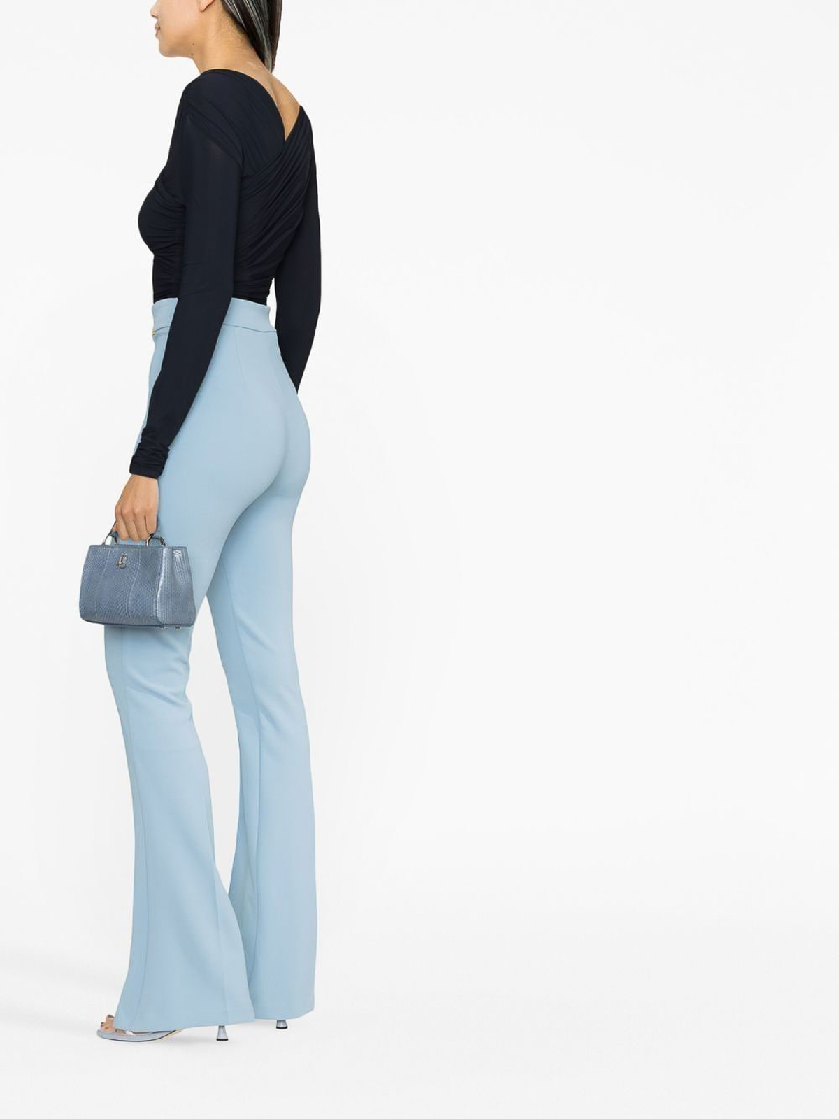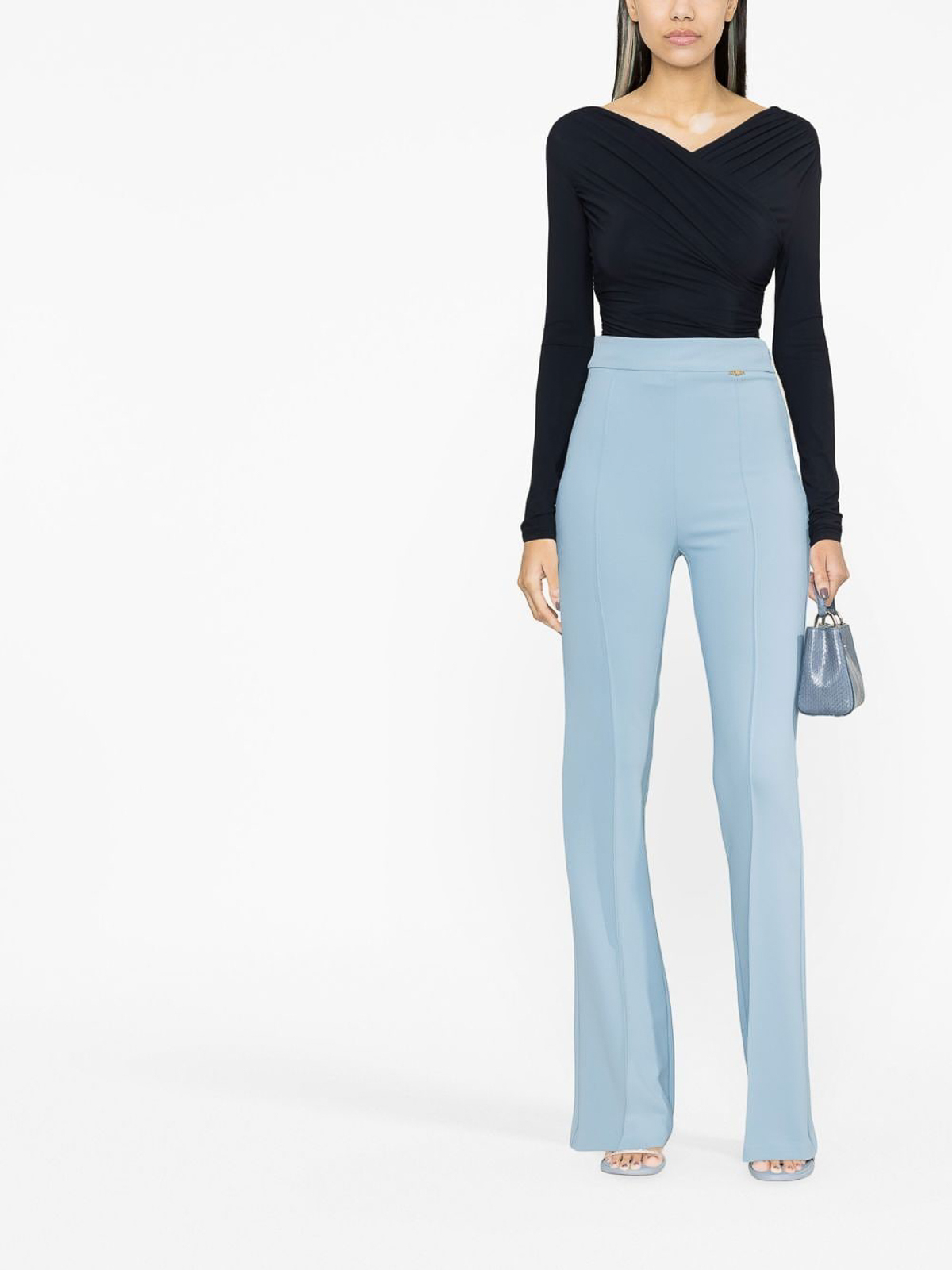High-waisted bootcut trousers from elisabetta franchi featuring blue, stretch-design, gold-tone logo plaque, high-waisted, side zip fastening and bootcut.