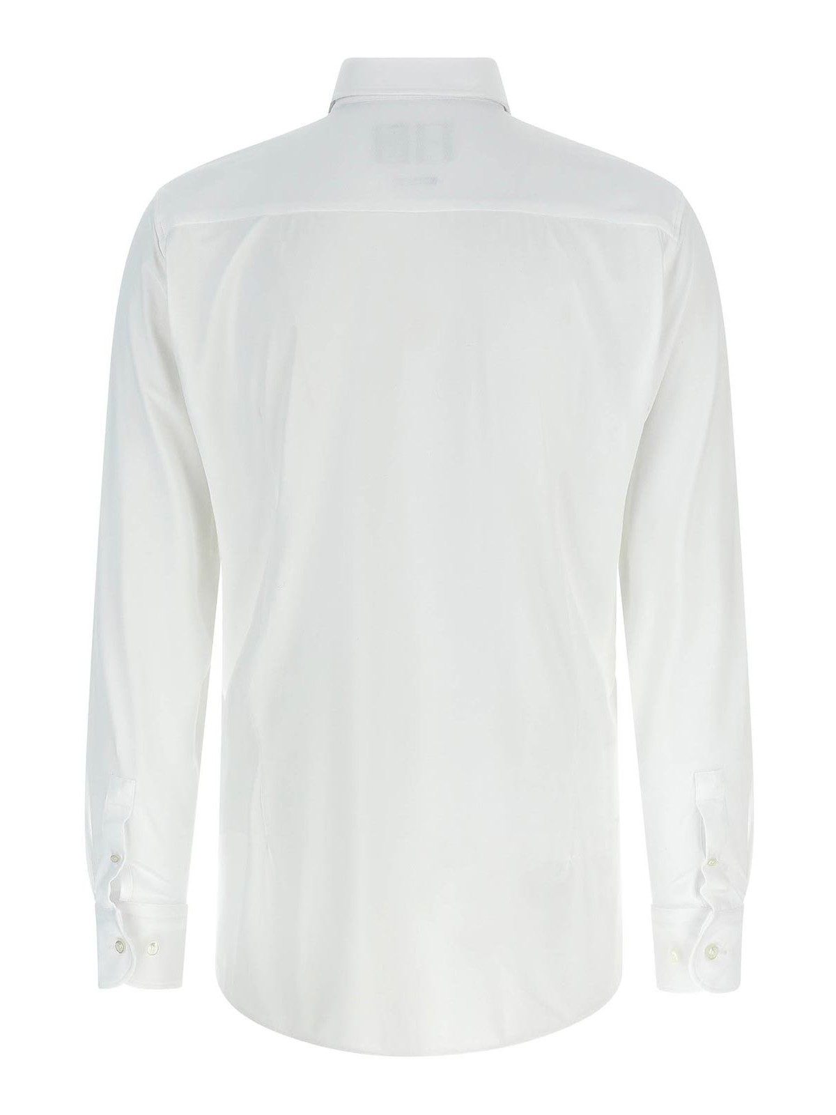 holly alle' shirt in breathable stretch technical fabric with collar, front button closure, long cuffed sleeves.