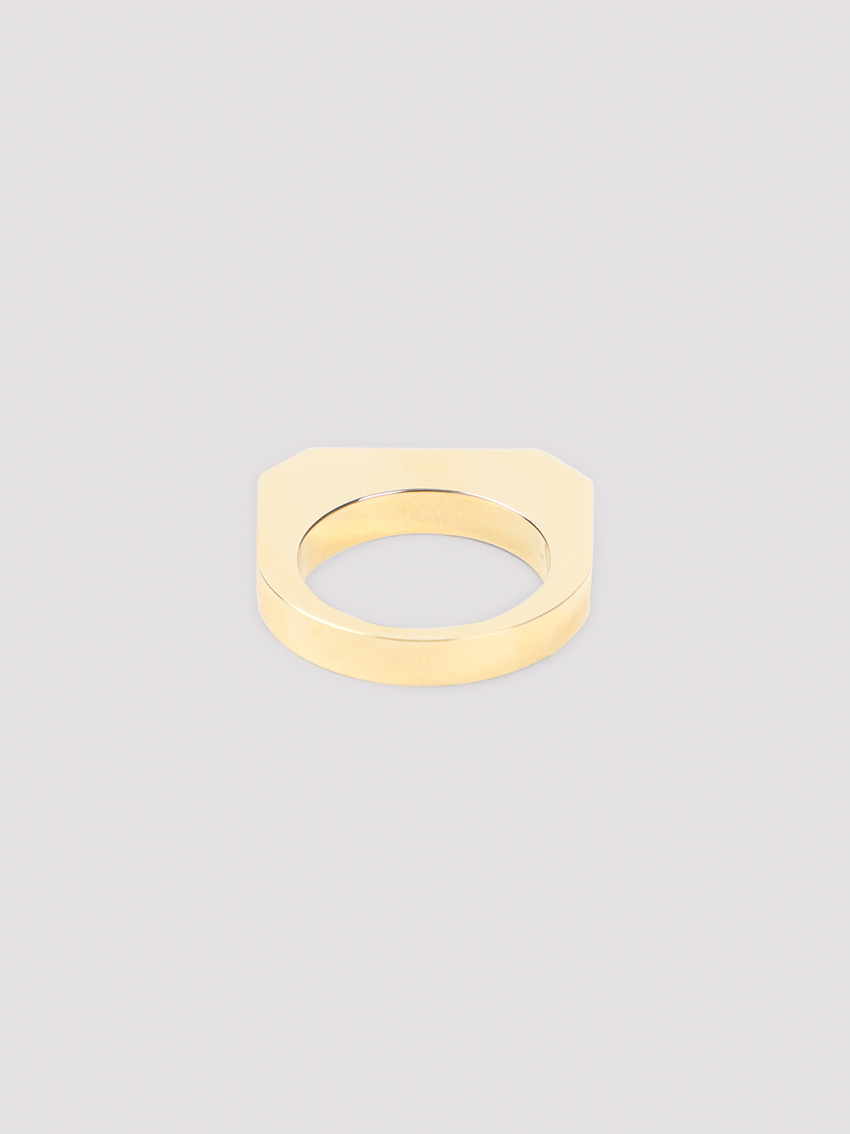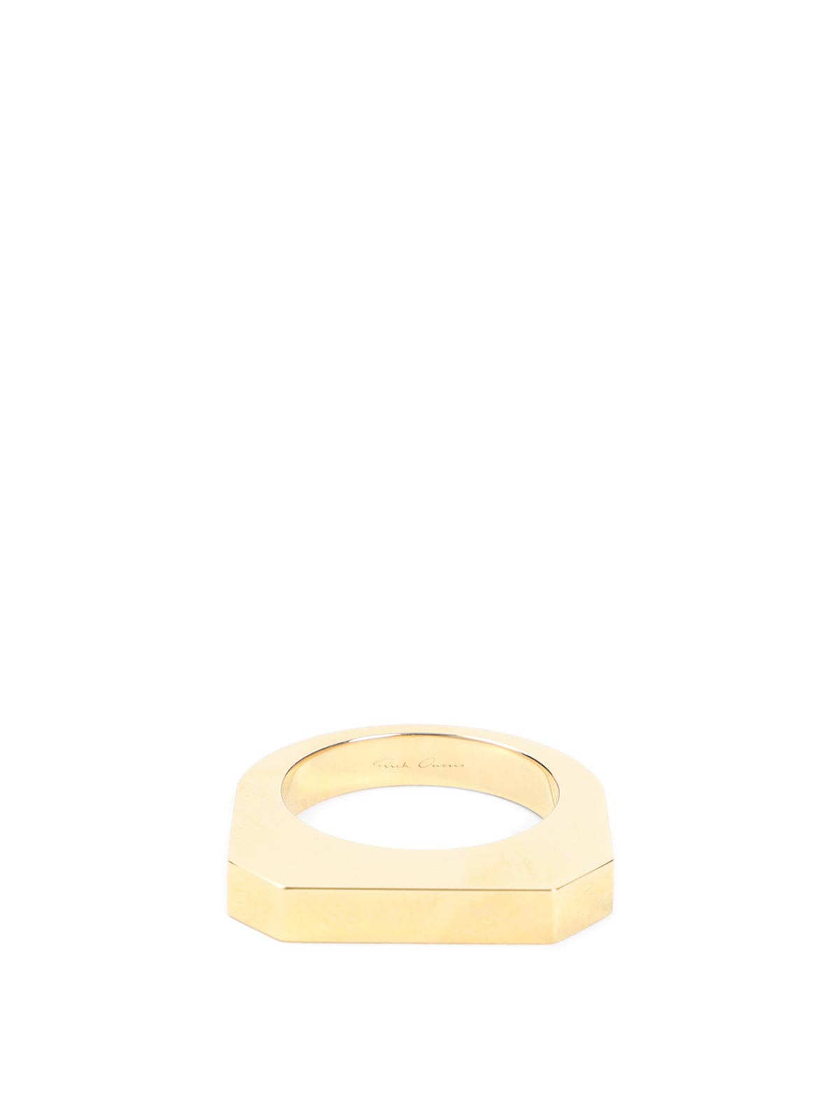 Rick owens gold pleated metallic hollywood ring. pleated gold grey metallic ring, signet band. engraved logo.