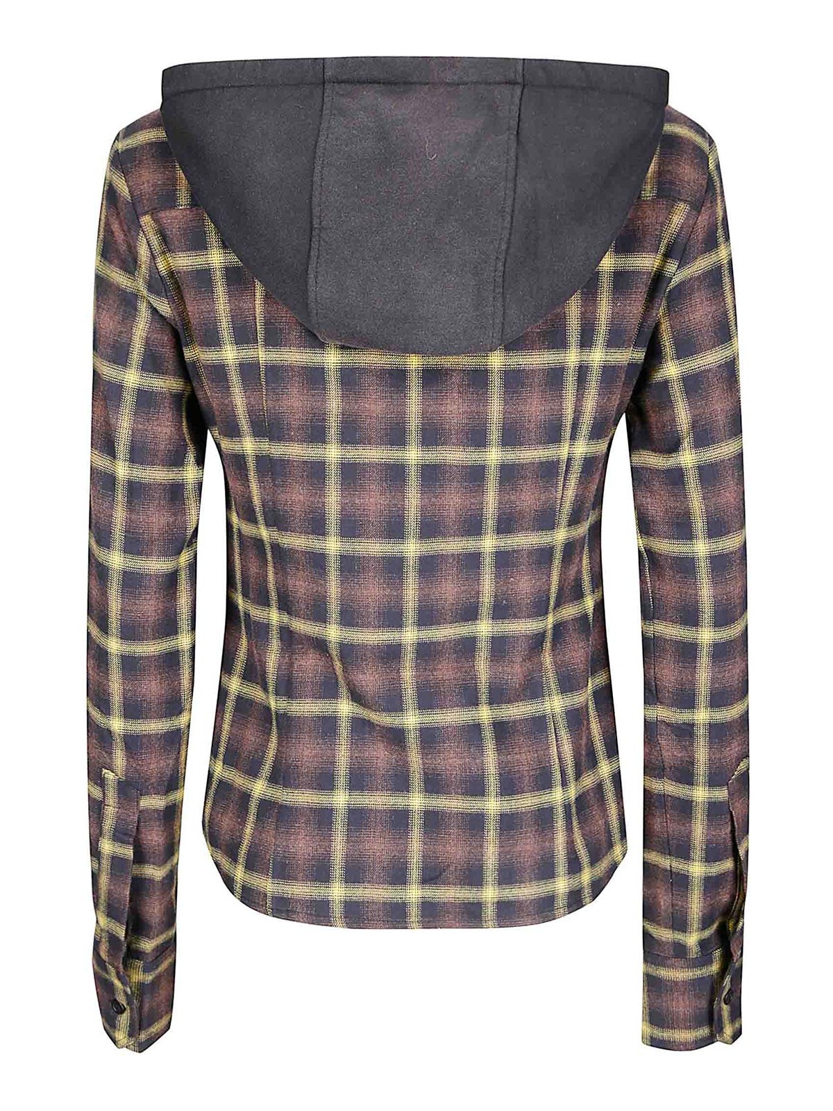 Collarless shirt with drawstring hood, button fastening, narrow fit.