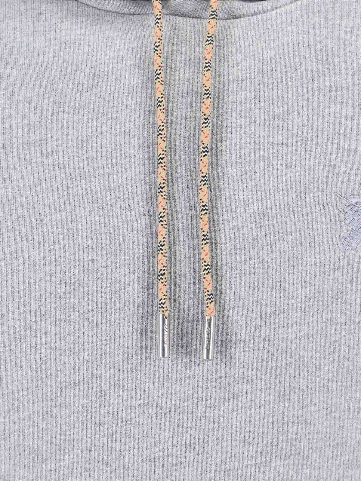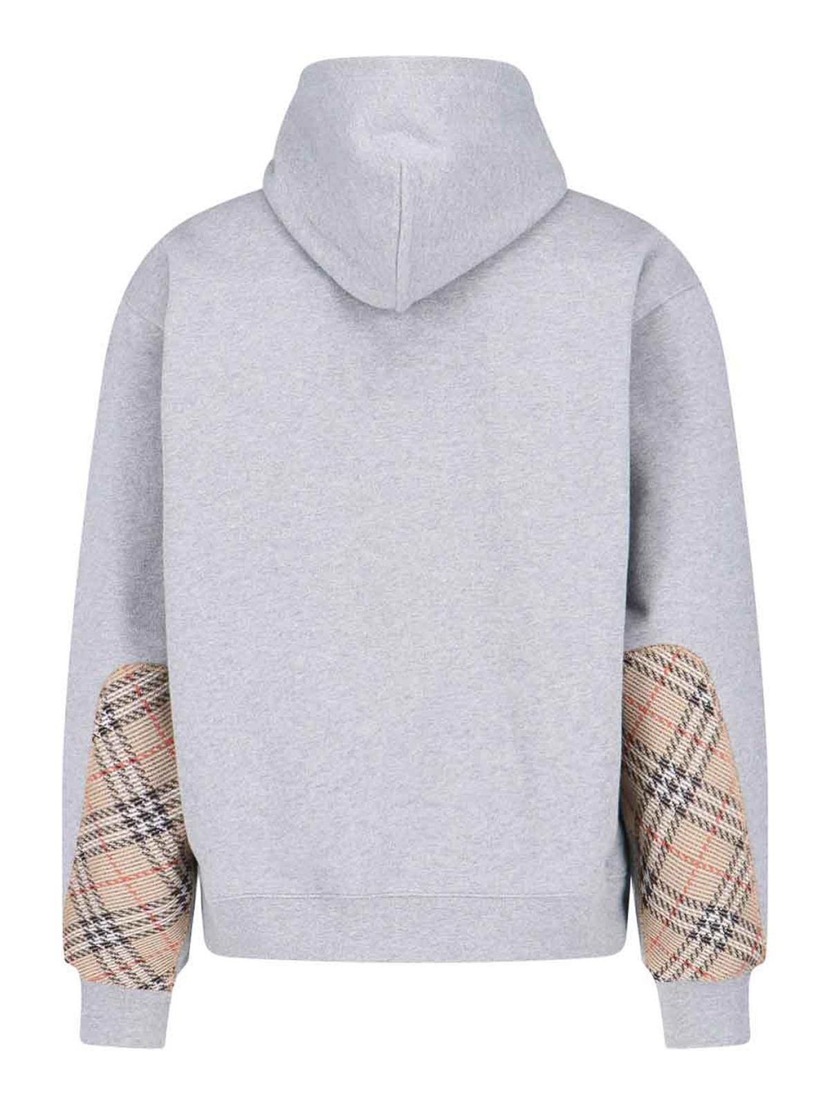 Burberry reilly chk pch hoodie in gray cotton, drawstring hood, long sleeves, check motif ribbon, check motif patch on the back of the sleeve, tone-on-tone embroidered ekd logo on the front, one maxi pocket on the front, ribbed finishes, straight hem.