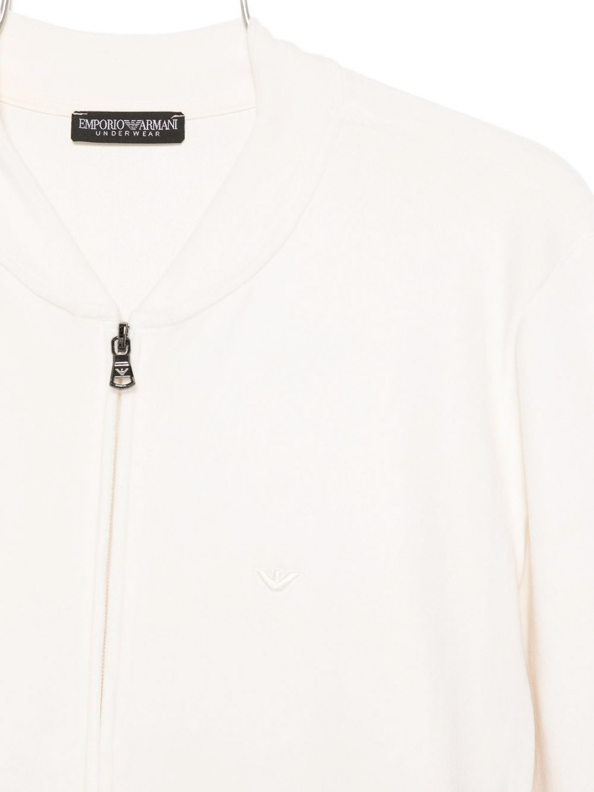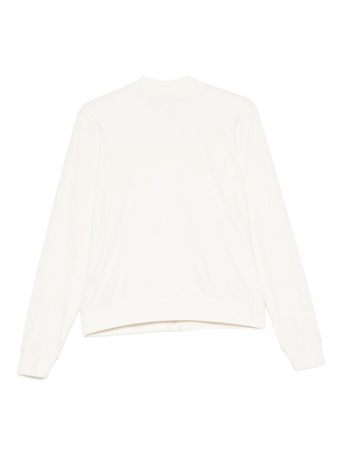Ivory zip fastening long sleeves round neck tonal logo detail ribbed hem