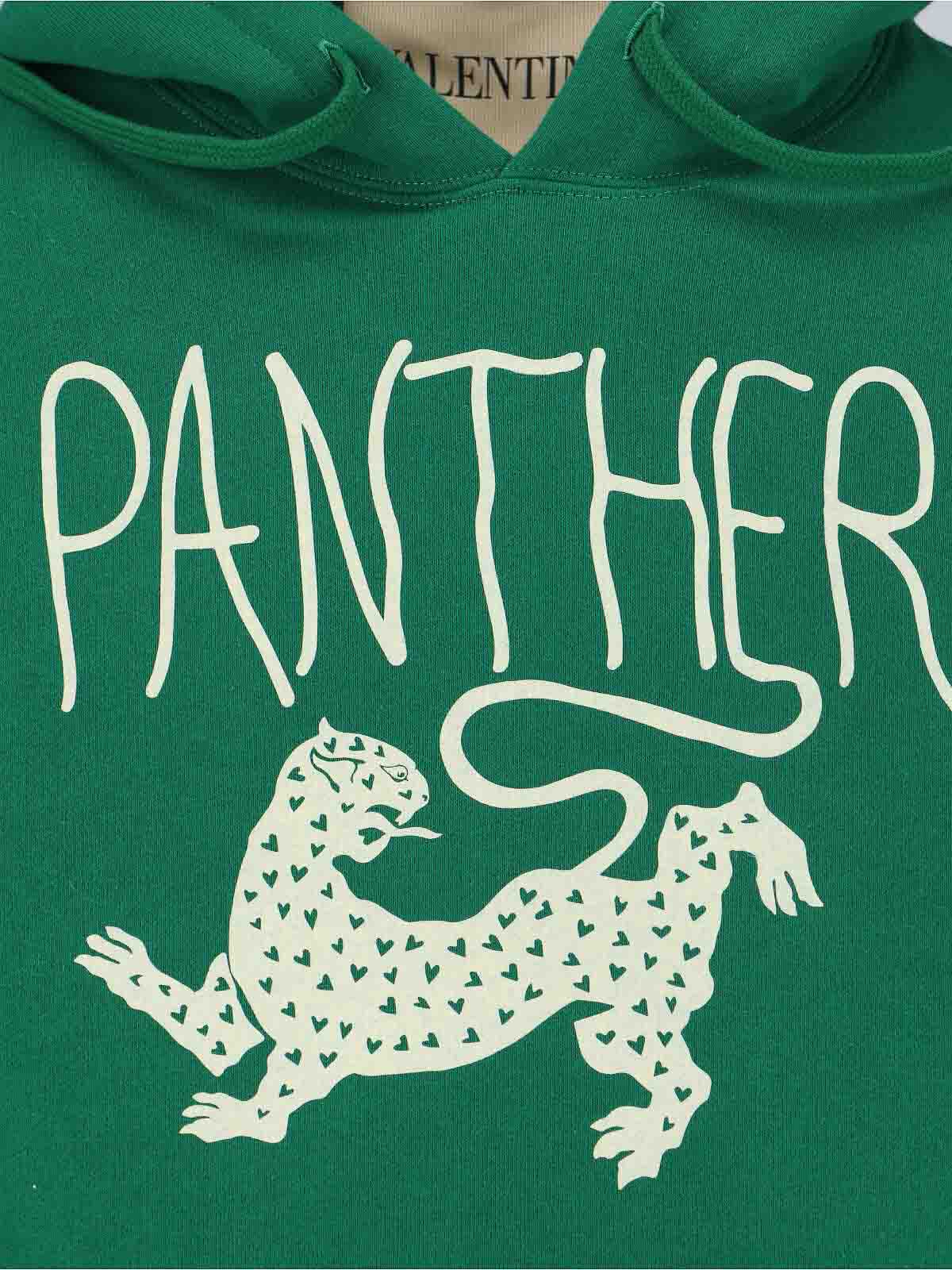 Valentino panther hoodie, in green cotton, drawstring hood, contrasting logo print on the front, one maxi front pocket, ribbed finishes, straight hem.