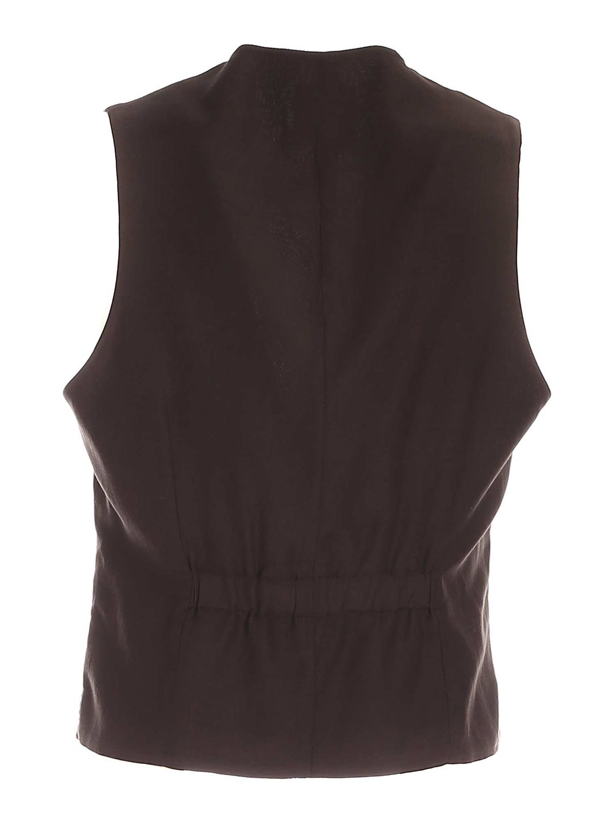 Cotton vest Color: brown and beige Welt front pockets Rear elastic detail Buttons fastening