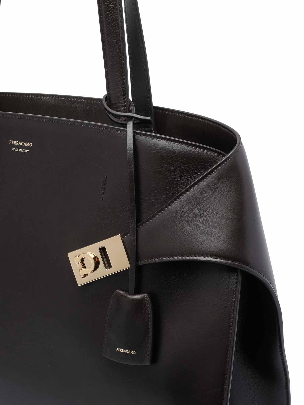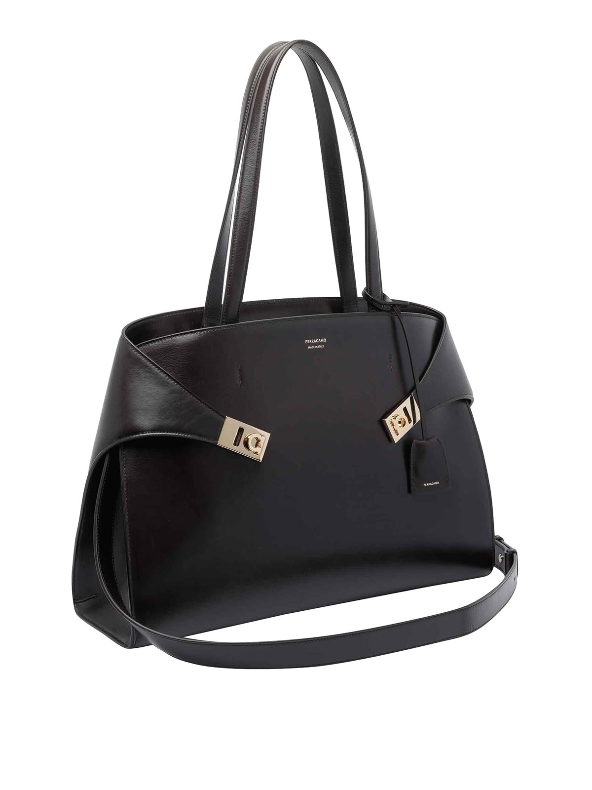 Ferragamo black hug shoulder bag zip zipped pocket shoulder straps frontal mini logo adaptable and removbale strap model