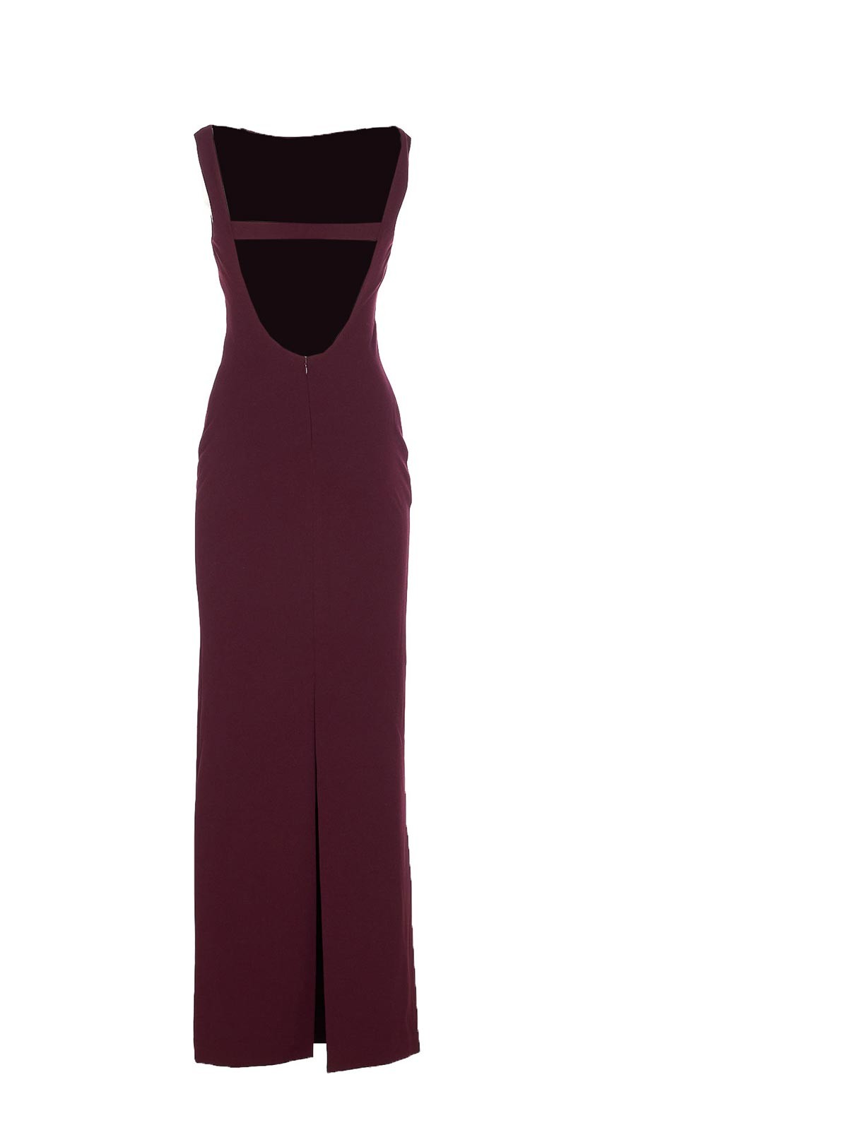 Soalce london bordeaux imogen dress, boat neckline, sleeveless, maxi model, tight fit