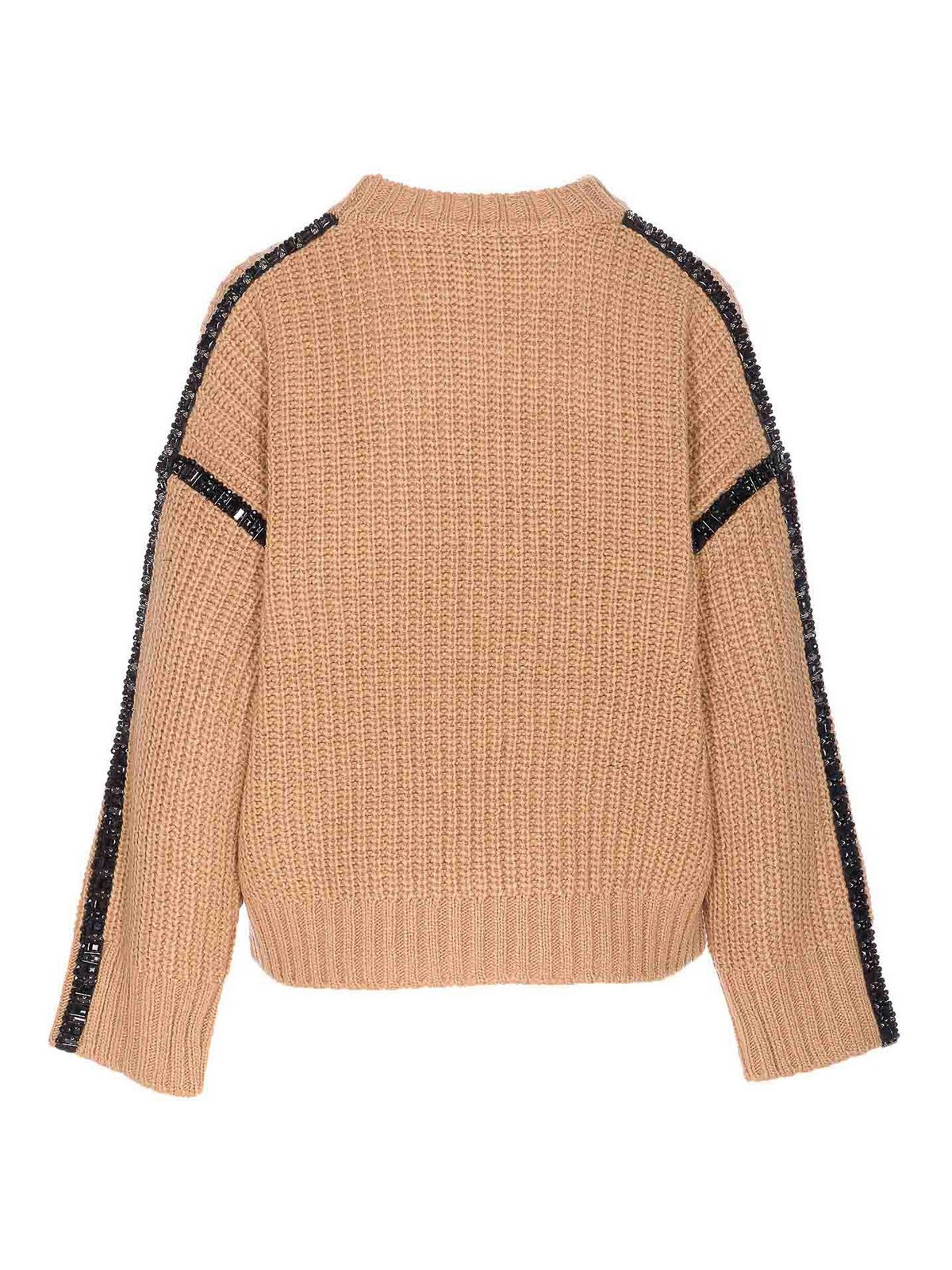 Essentiel antwerp beige indsay emebllished sweater, crewneck, long sleeves, removable collar