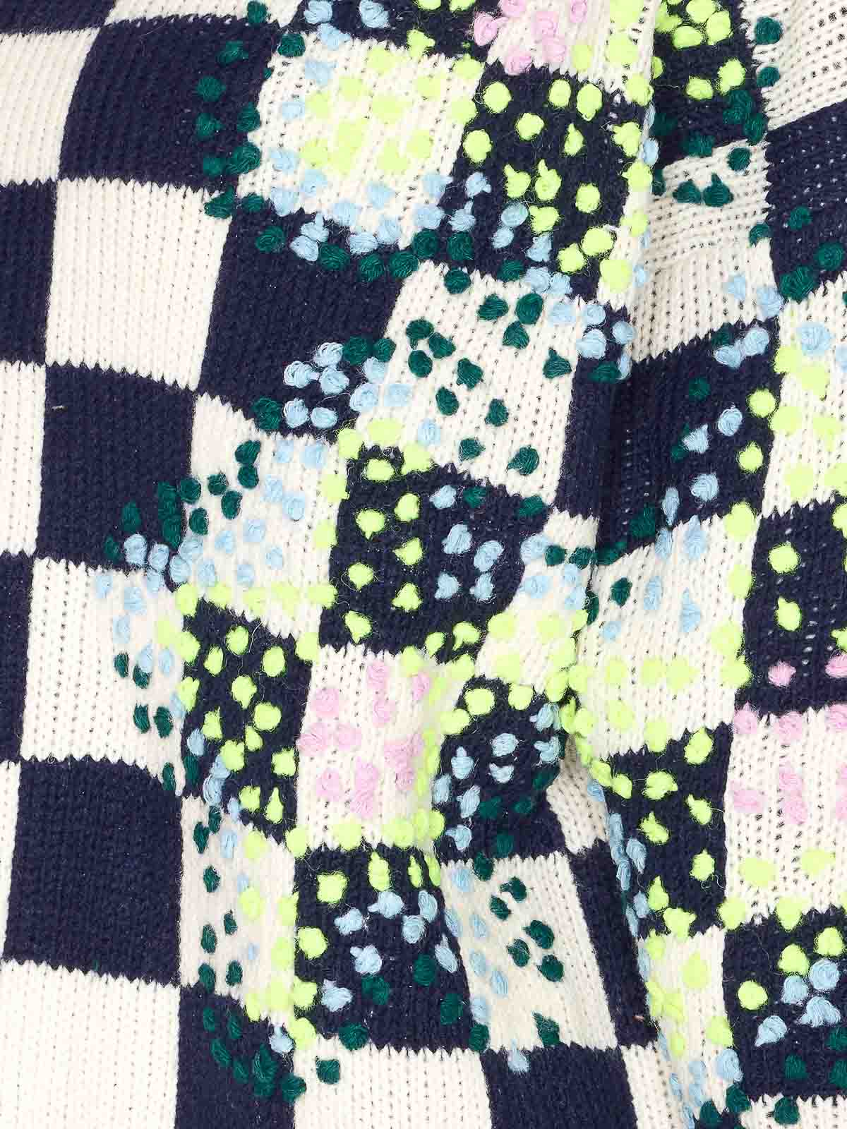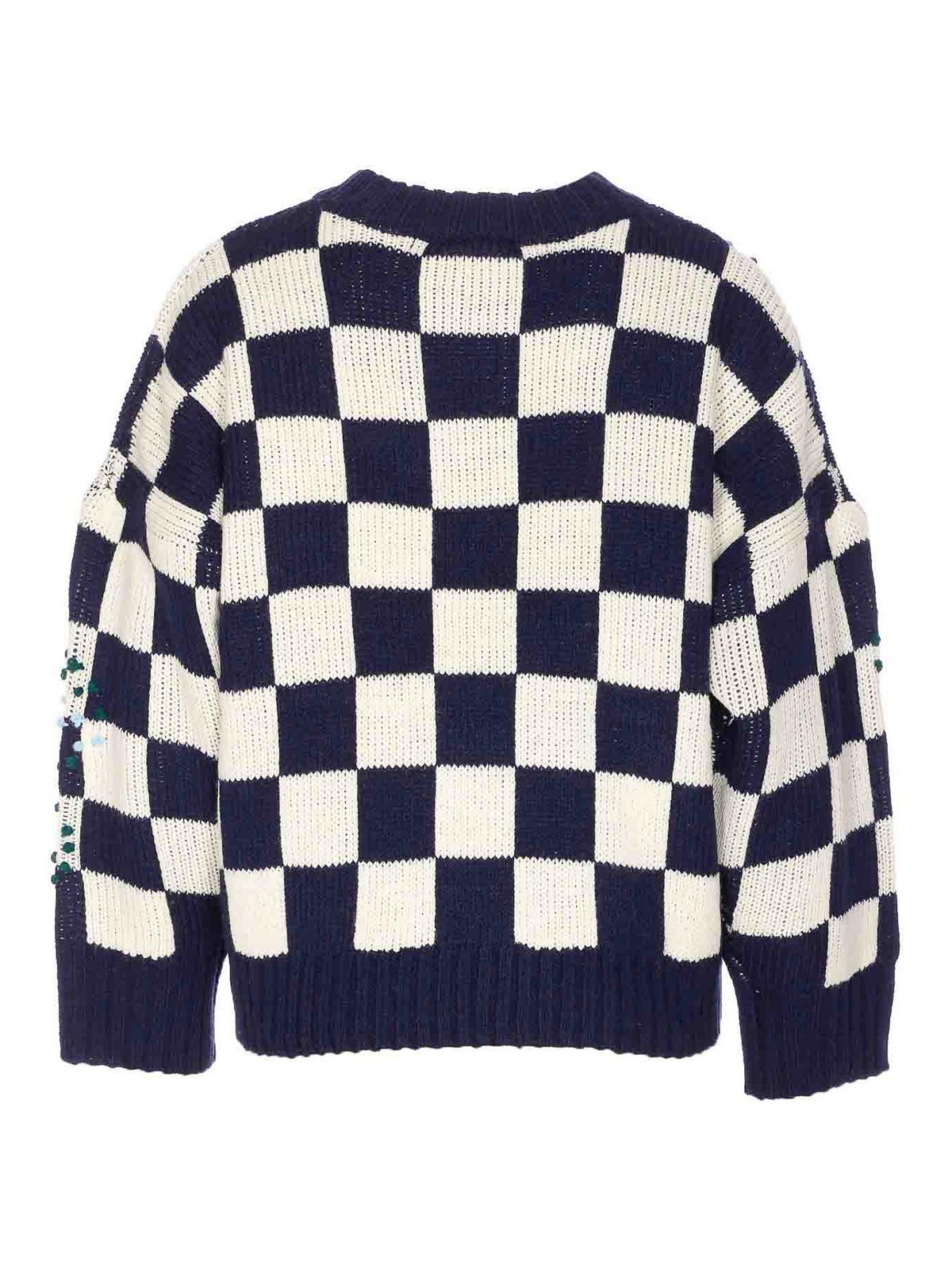 Essentiel antwerp whte and navy inter sweater, crewneck, embroidered detail on the front, check