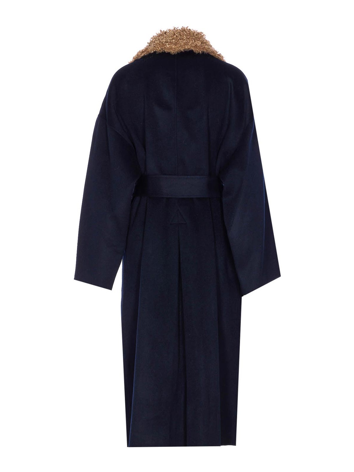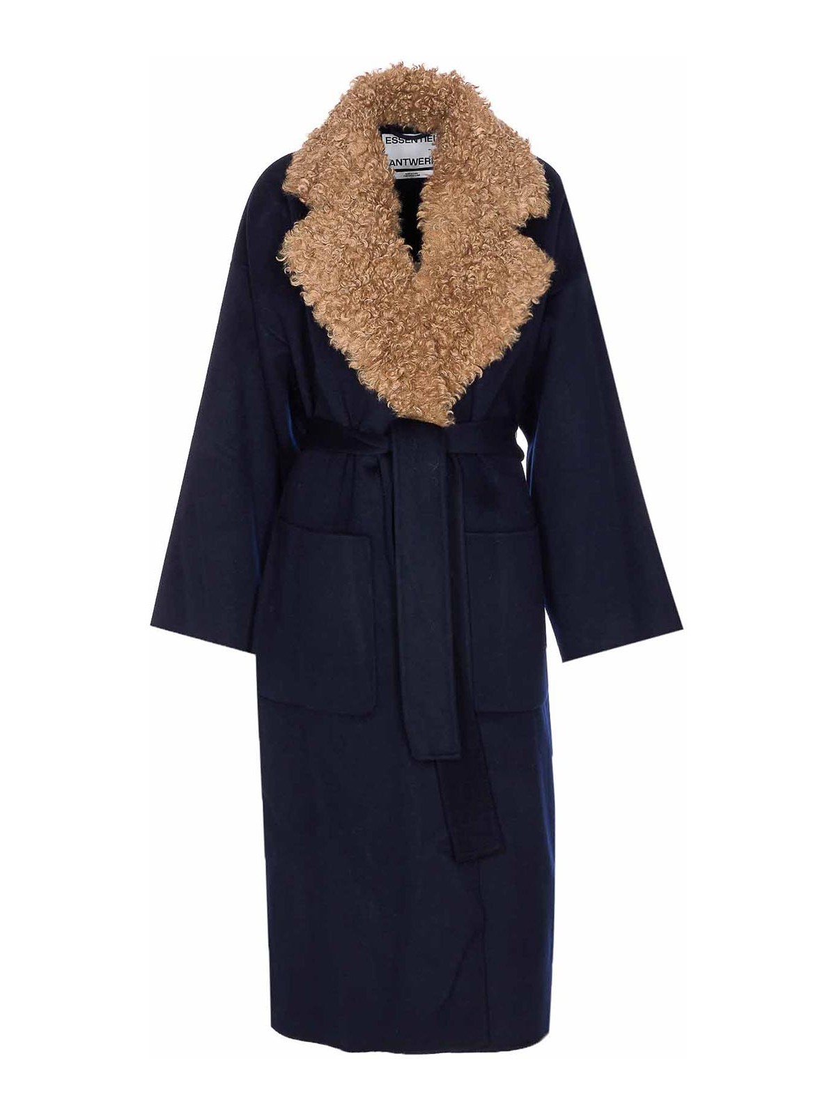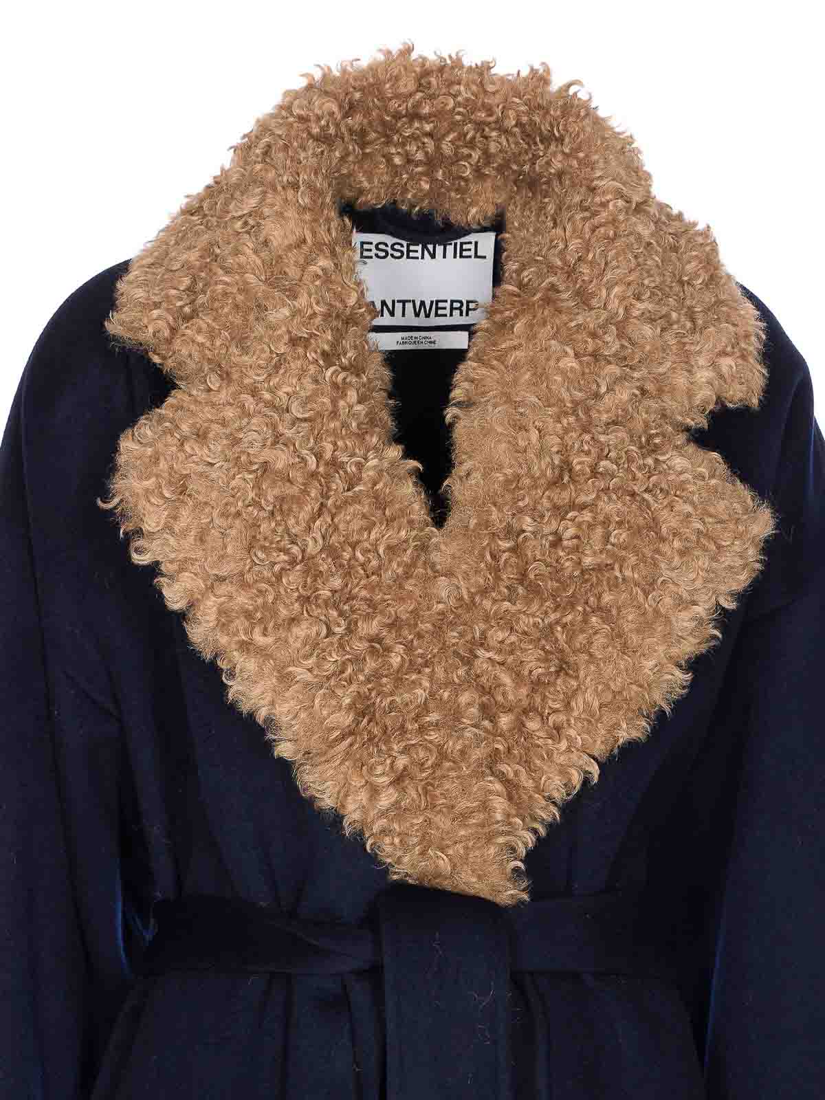 Essentiel antwerp blue irno faux coat belt on waist pockets long sleeves removable faux scarf