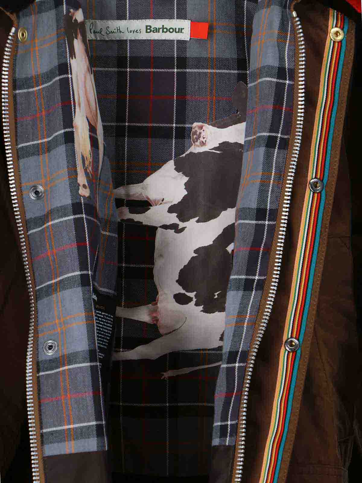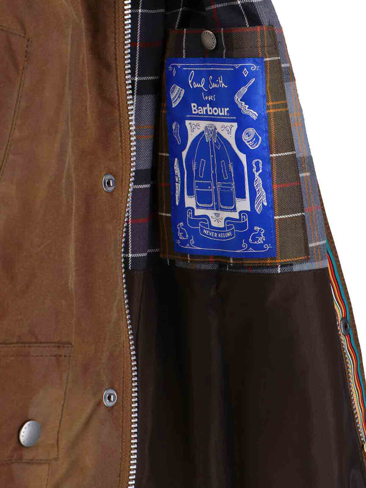 Barbour x Paul Smith bedale jacket, in brown cotton, classic ribbed collar, button and zip closure, two front button flap pockets, checked pattern inside, internal logo patch, straight hem.