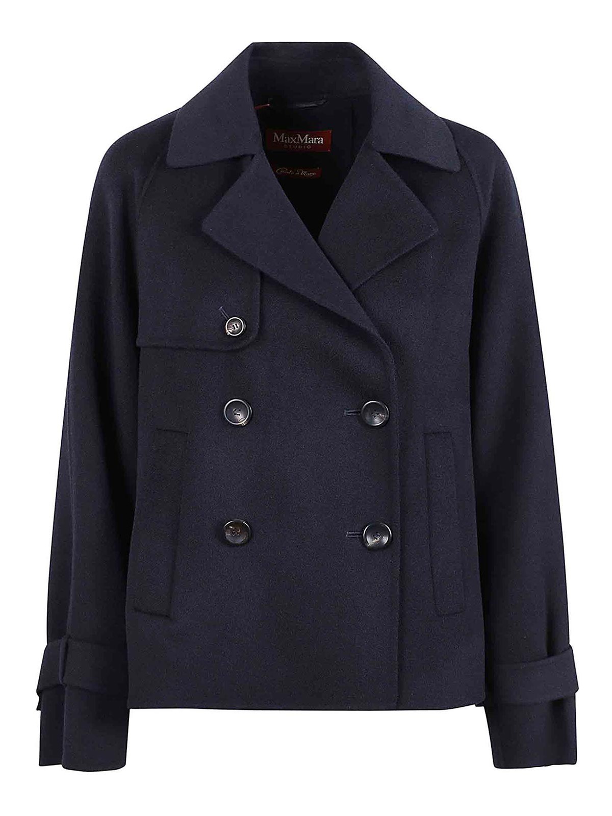 Double peachot in double -papighted woolen with buttons pockets in Patta Carr and Alamaro on the sleeves background background