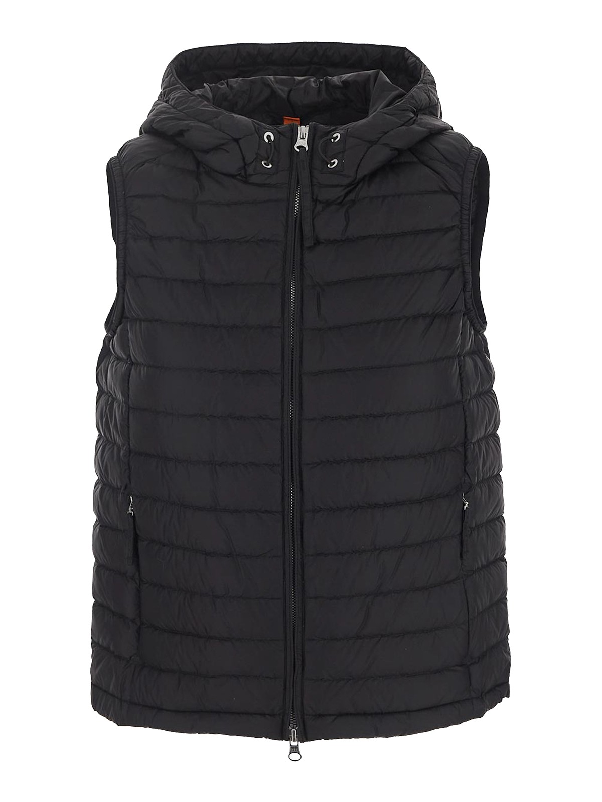 Parajumpers sleeveless down jacket in black polyamide with hood