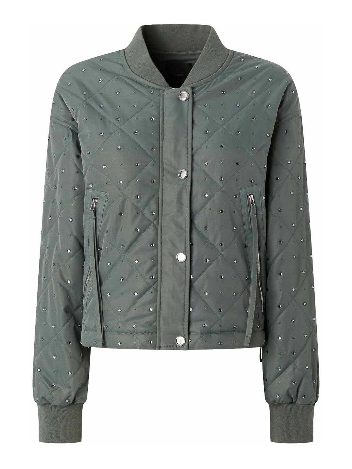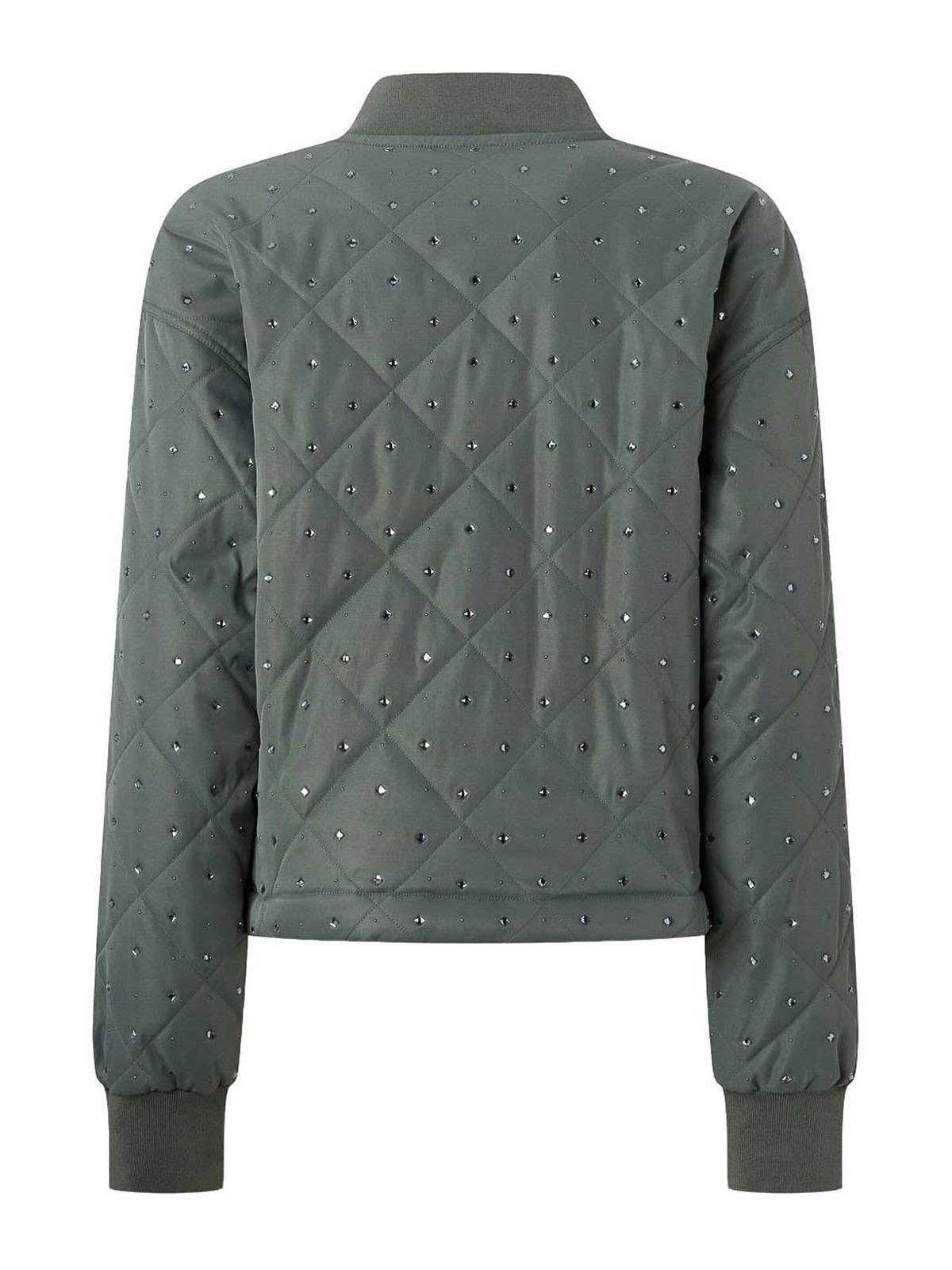 Green quilted design embellishments bomber style zip ribbed cuffs