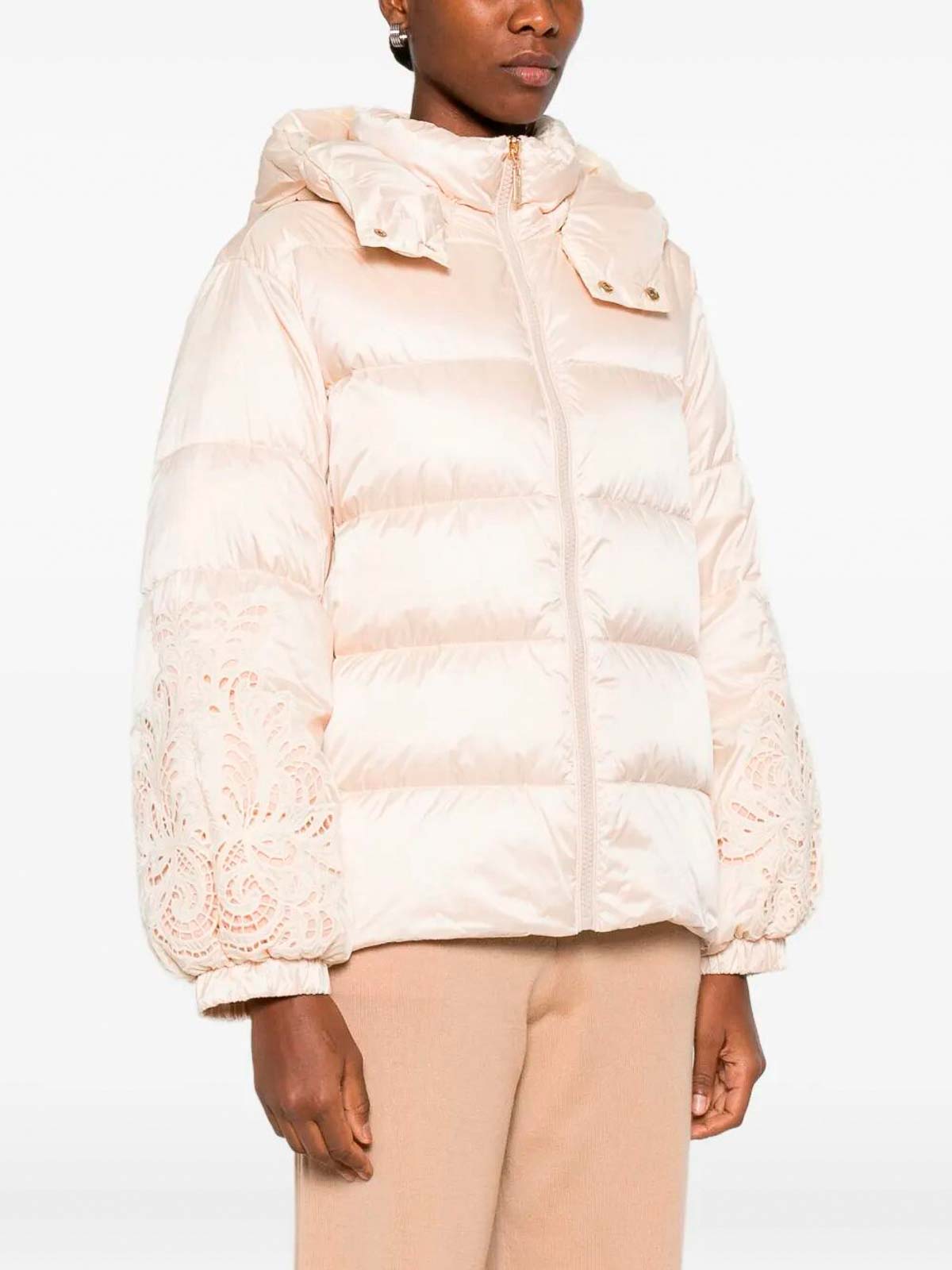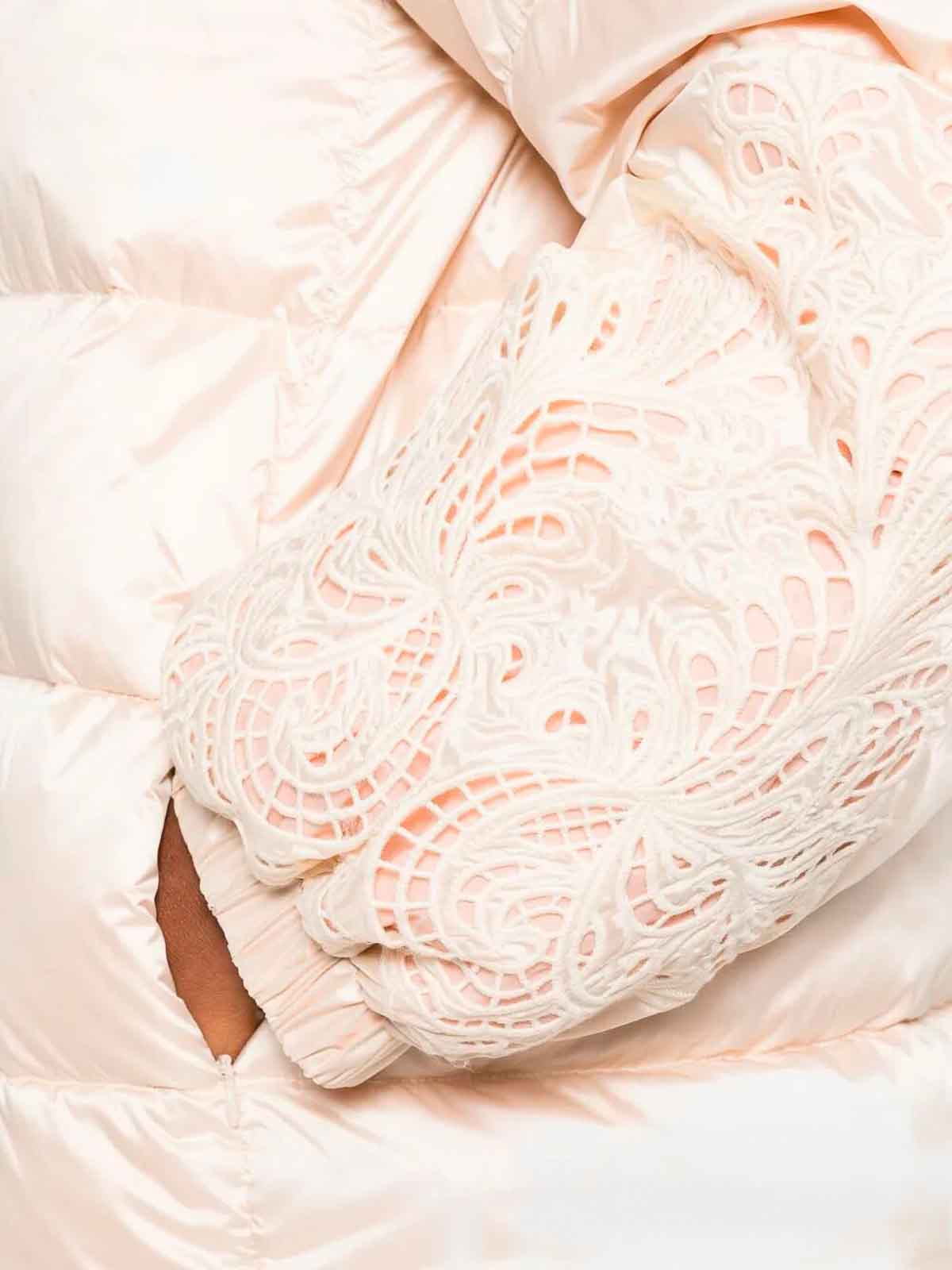 Modern cut women's jacket made of quality fabric. The Mother of Pearl color gives brightness and refinement to the model.