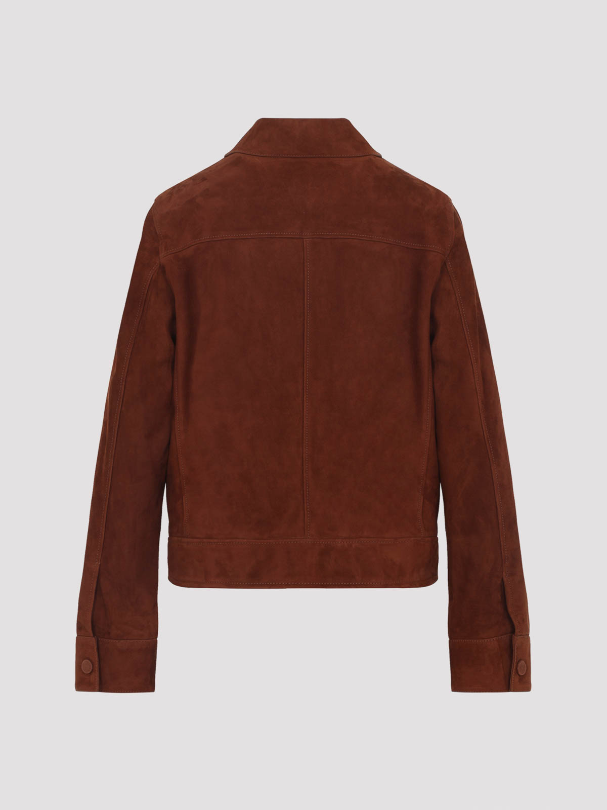 Yves salomon azteque brown lamb leather jacket. azteque brown lamb leather jacket, pointed collar, front buttoned fastening, side flap pockets, long sleeves, buttoned cuffs, straight hem, fully lining in viscose fabric.