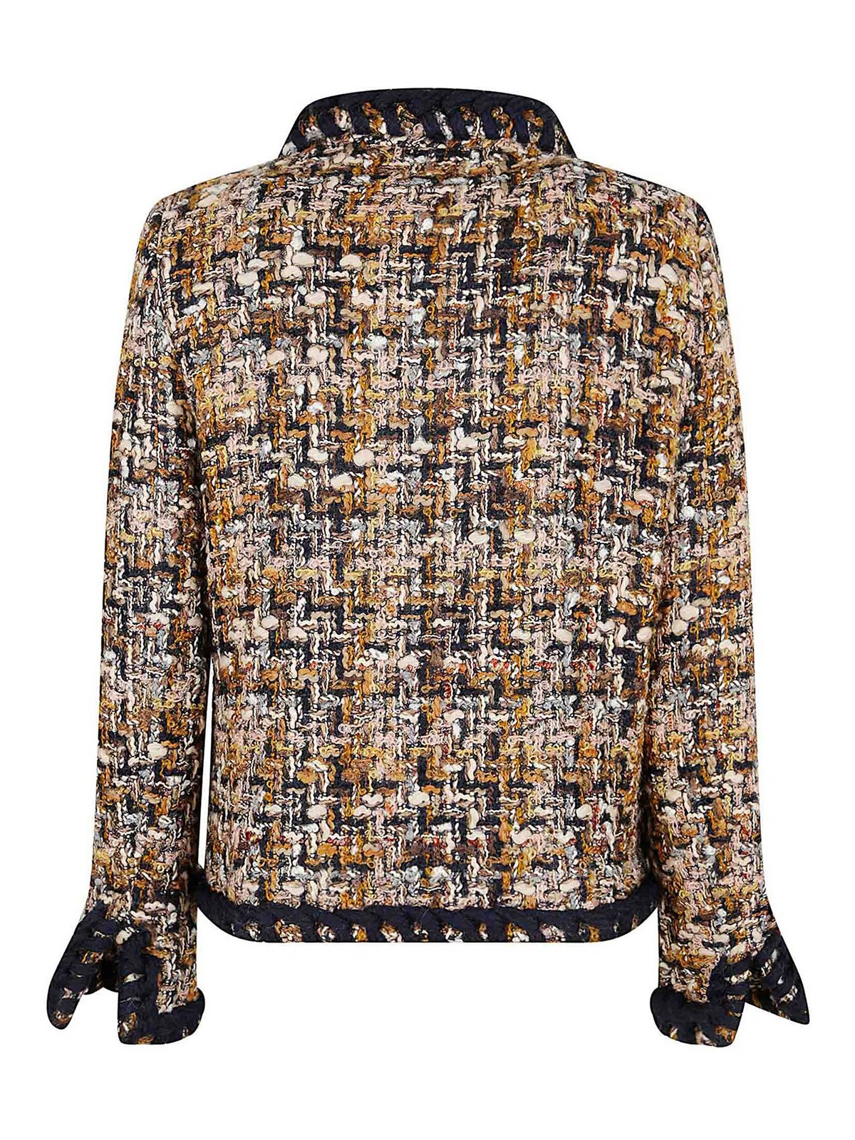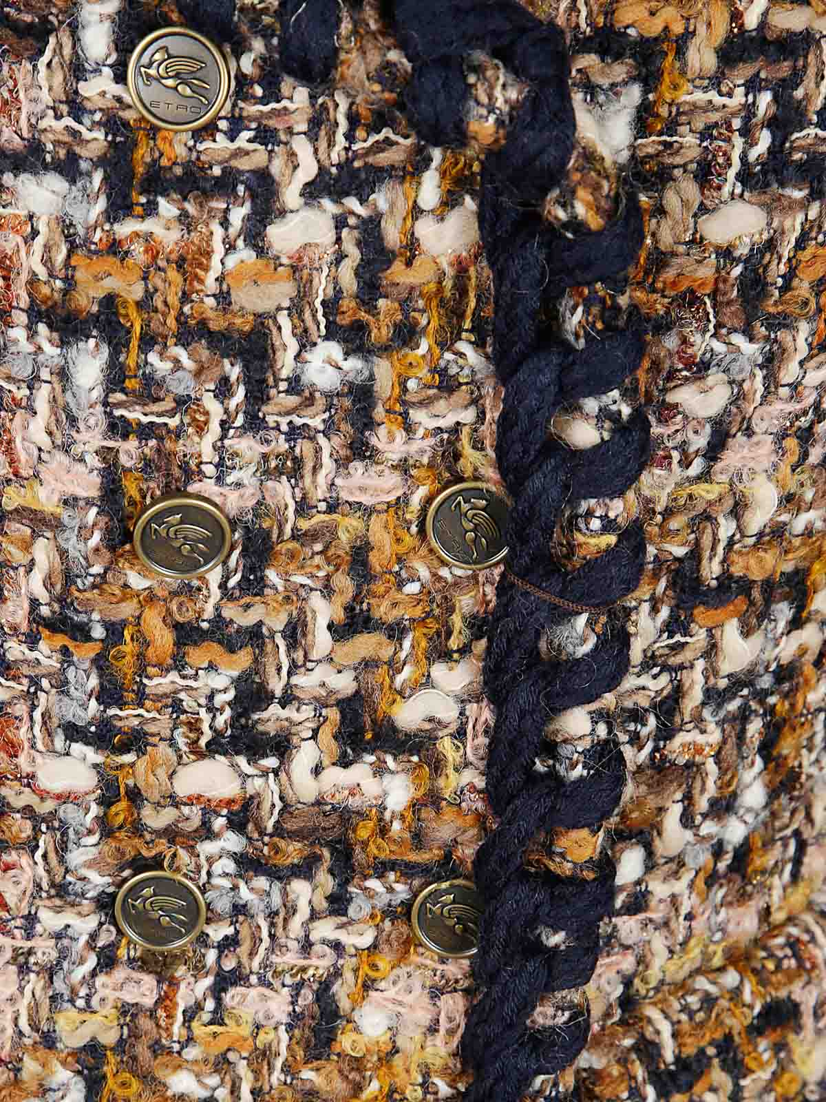 Multicolored blue and yellow, tweed, front button closure, long sleeves