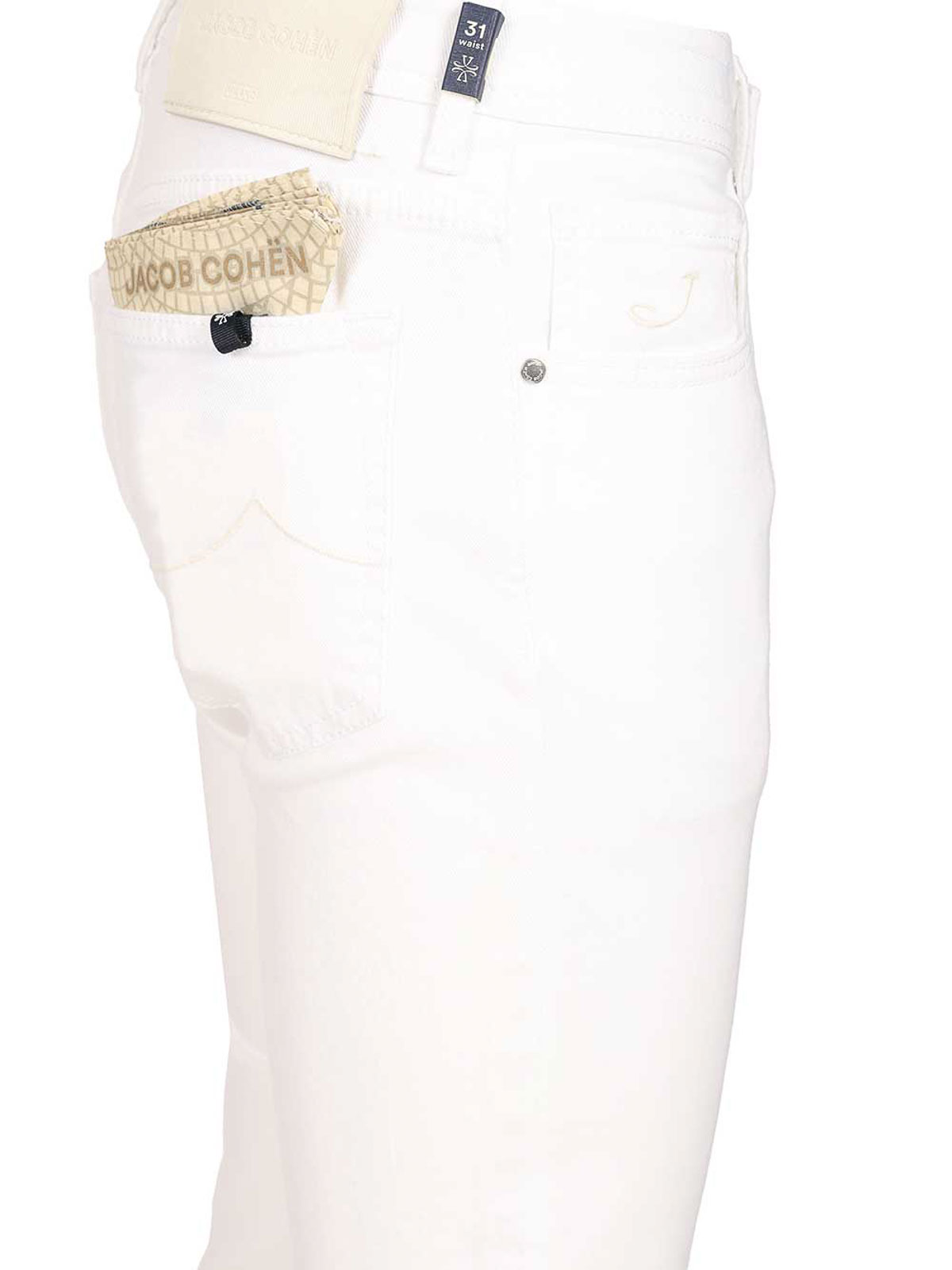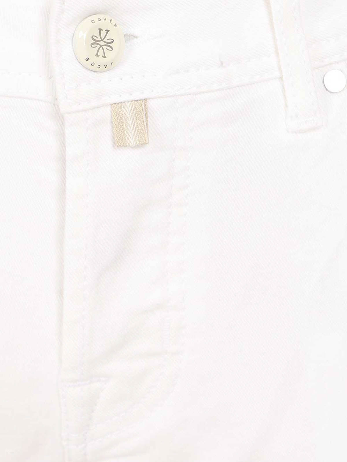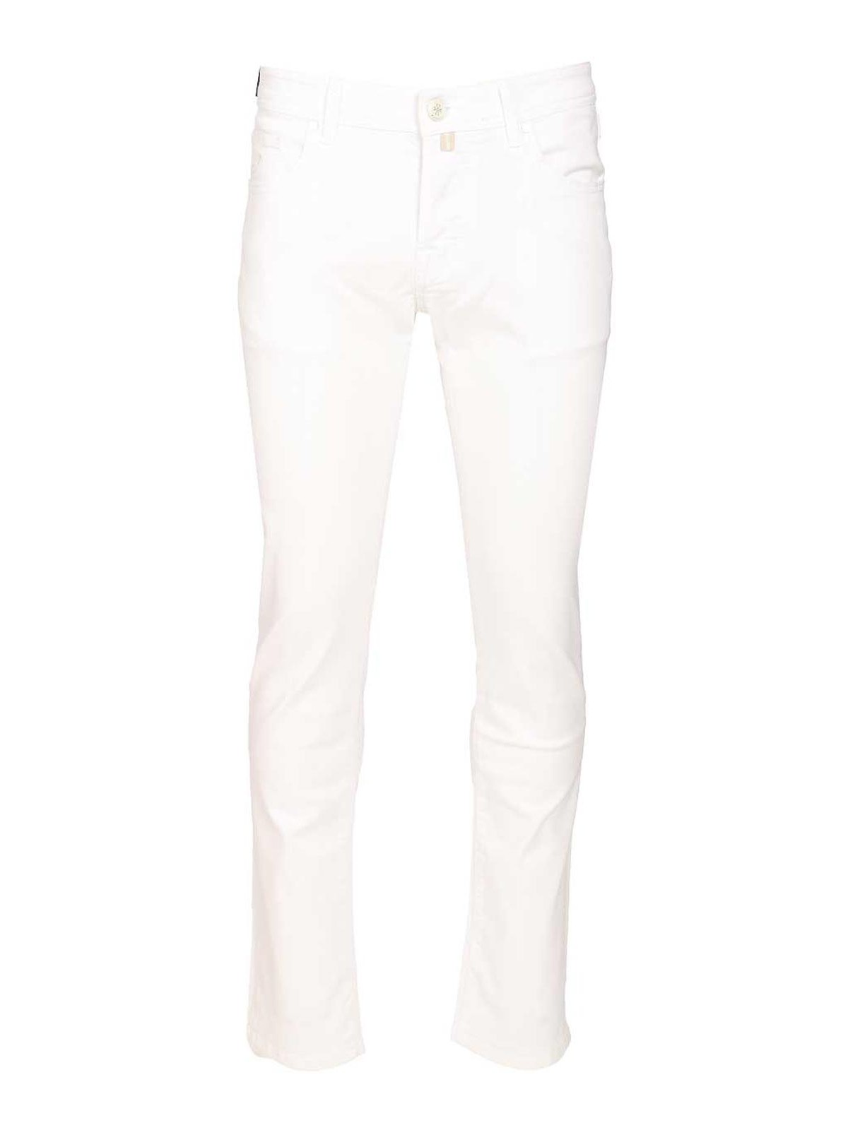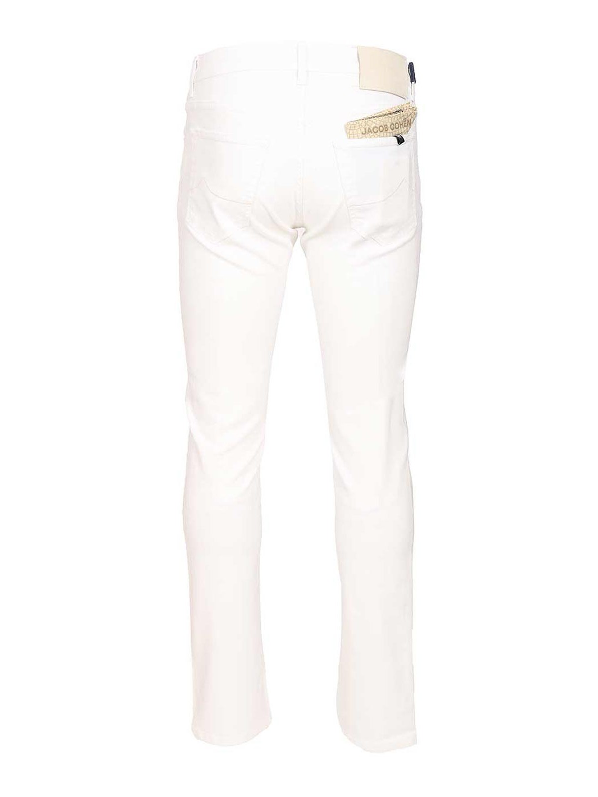 Jacob cohen's nick slim trousers in stretch cotton, with low waist, tone-on-tone stitching and embroidered logo on the pocket.