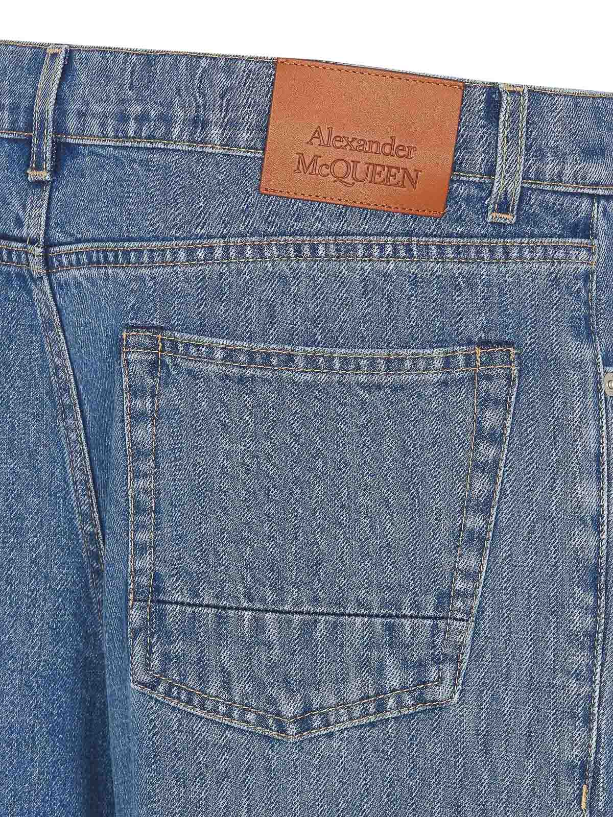 Alexander McQueen denim jeans buttons closure in the front pockets patch logo on the back