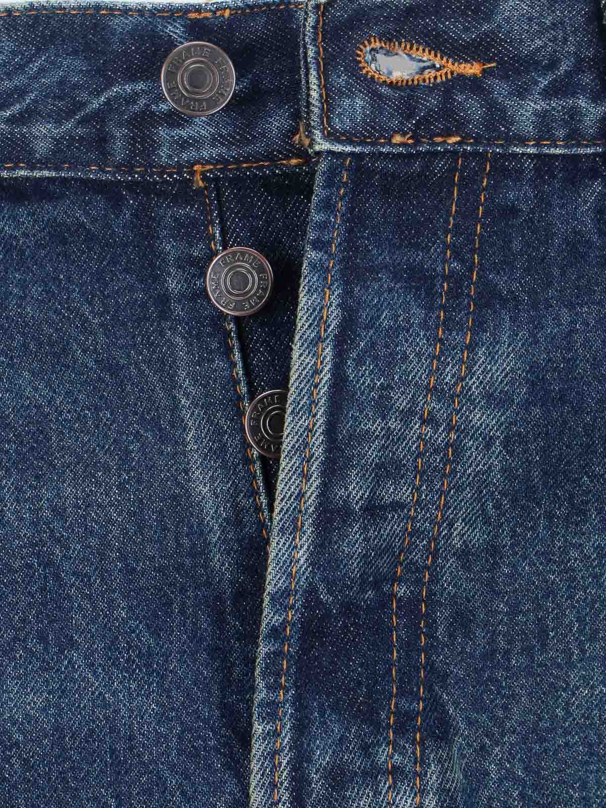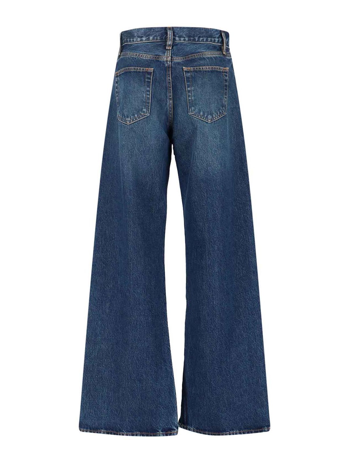 Wide frame jeans in blue cotton denim, high waist, button closure, belt loops, five pocket design, wide leg.