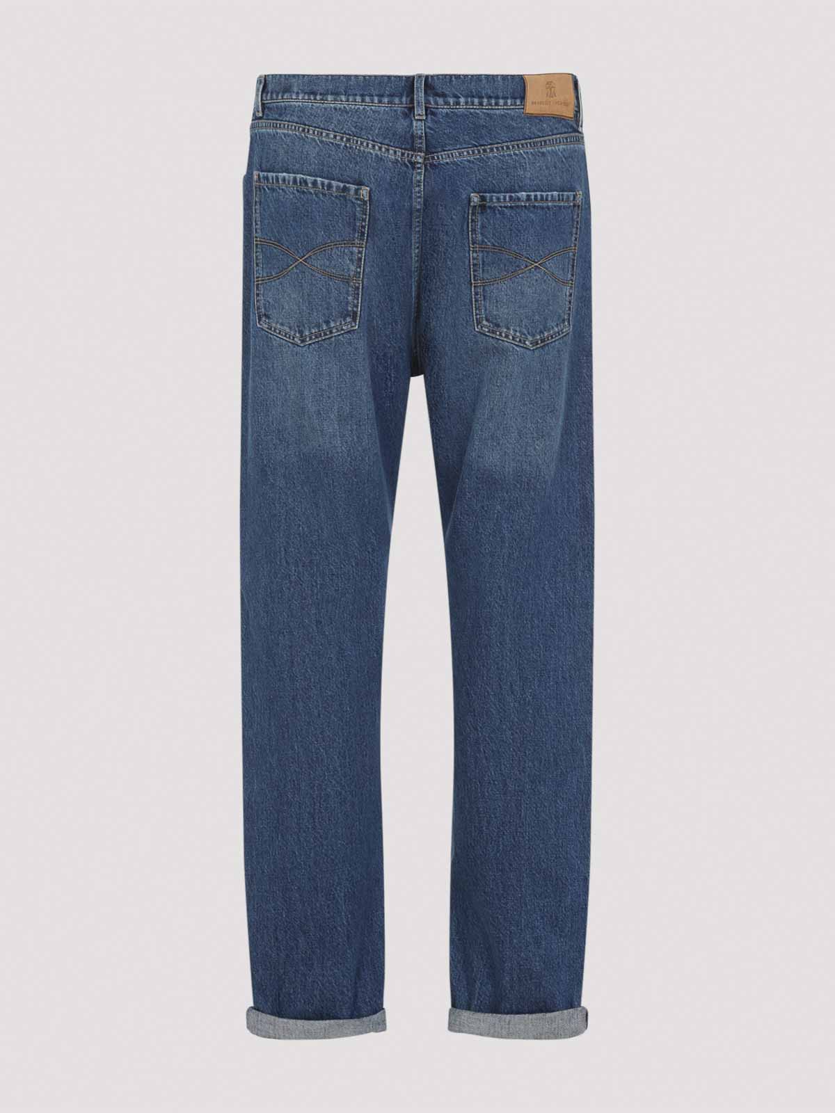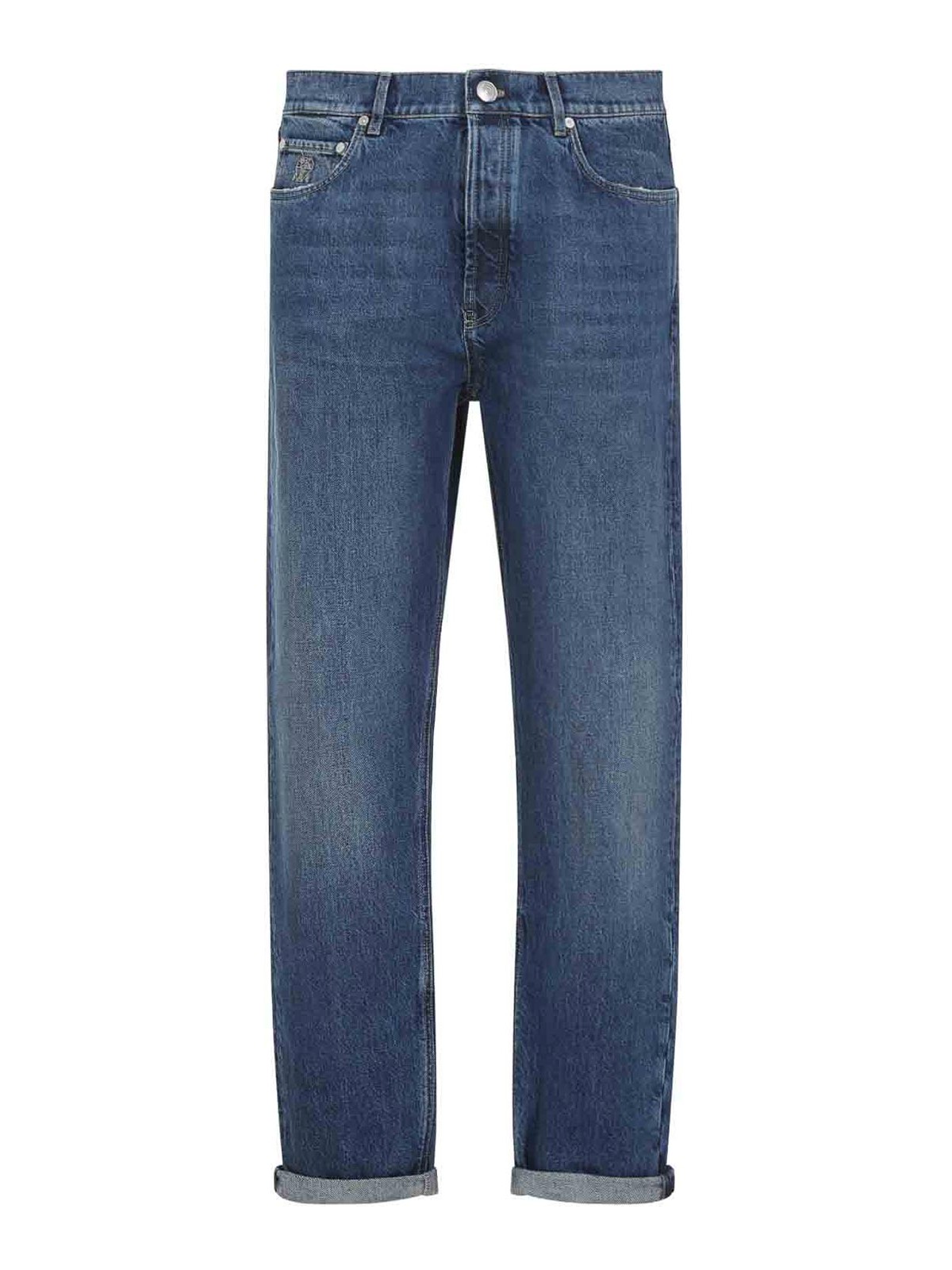 Brunello cucinelli denim blue jeans pure denim blue jeans concealing zipped buttoned belt loops five pockets design rolled, up hem