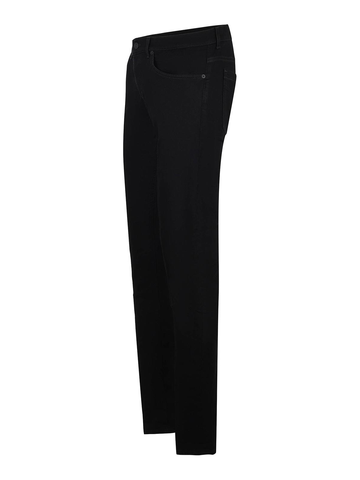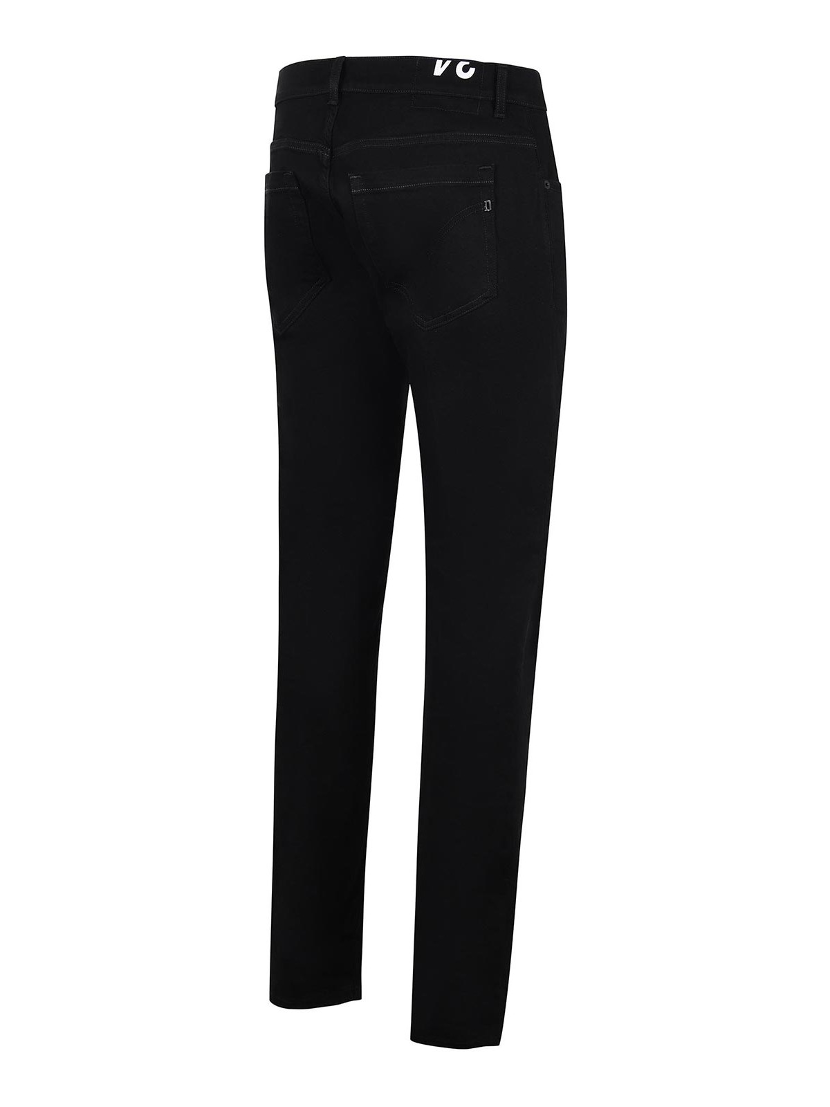 Dondup george jeans in black stretch denim. low-rise. belt loops. five pockets. button closure. detail on the back. metal d logo on the back pocket. skinny fit. 98% cotton, 2% elastane