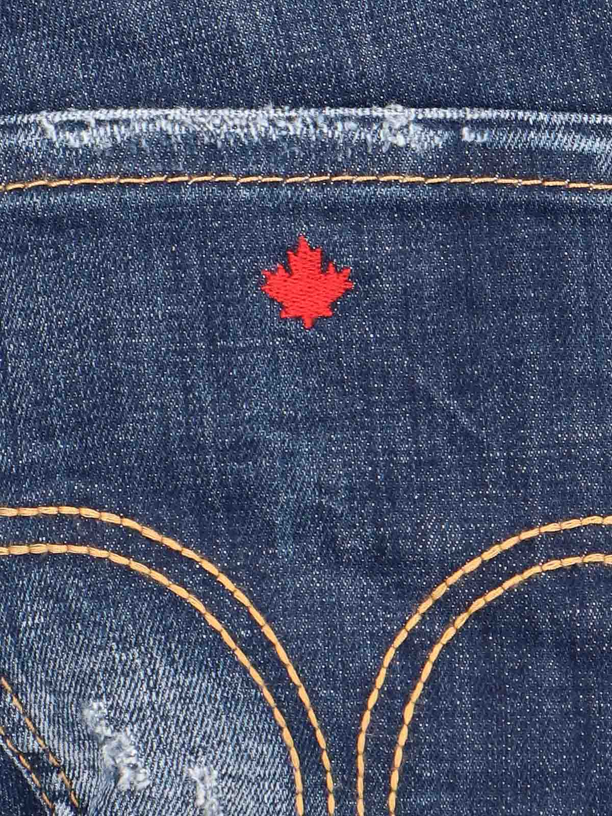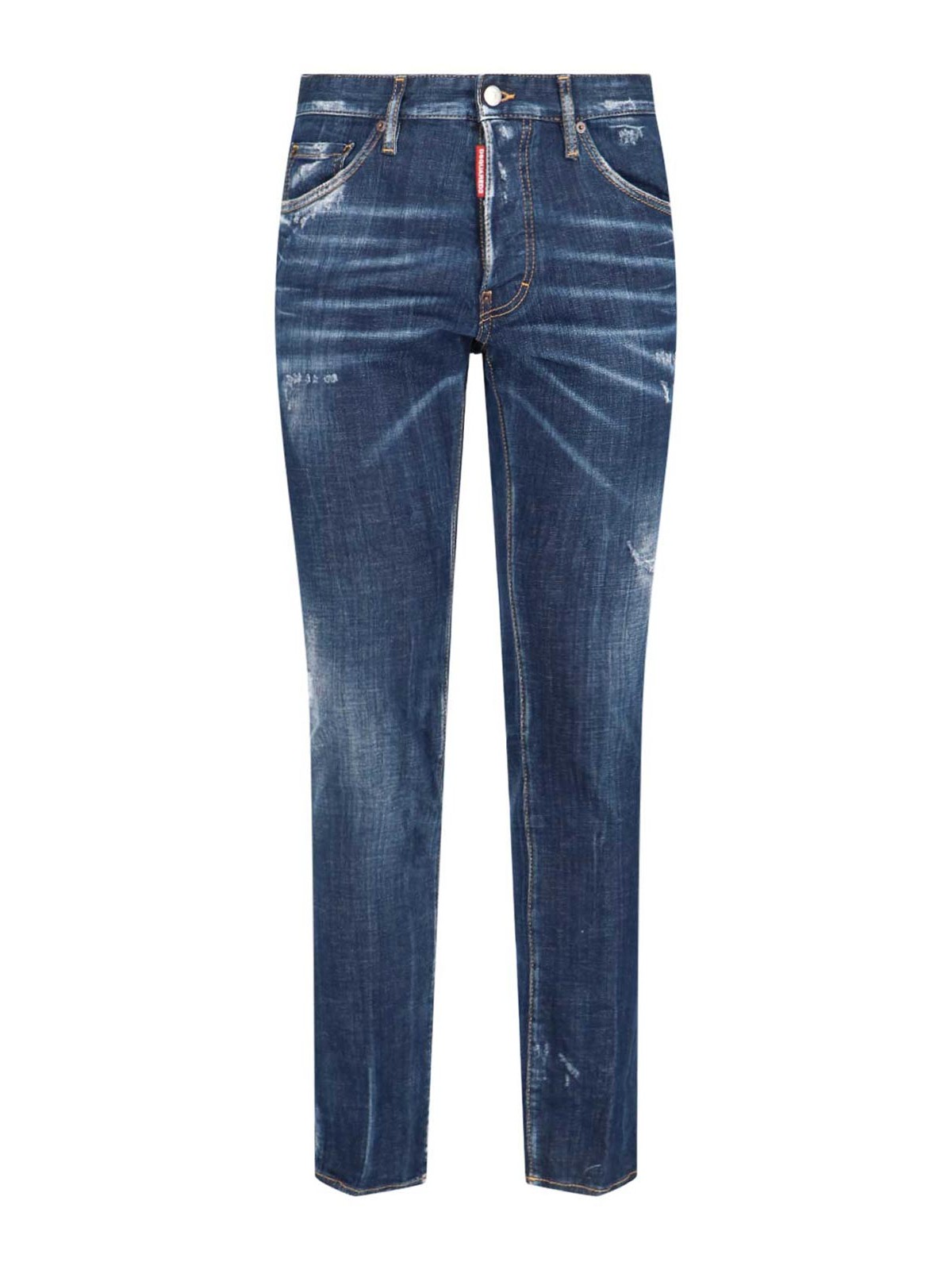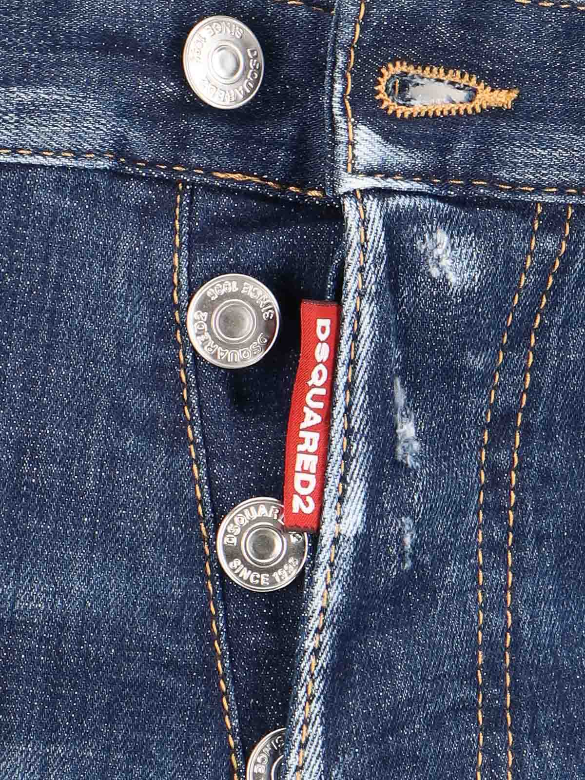 Dsquared icon dark skater jeans in worn blue denim medium waist belt loops buttons or label logo design five pockets straight leg