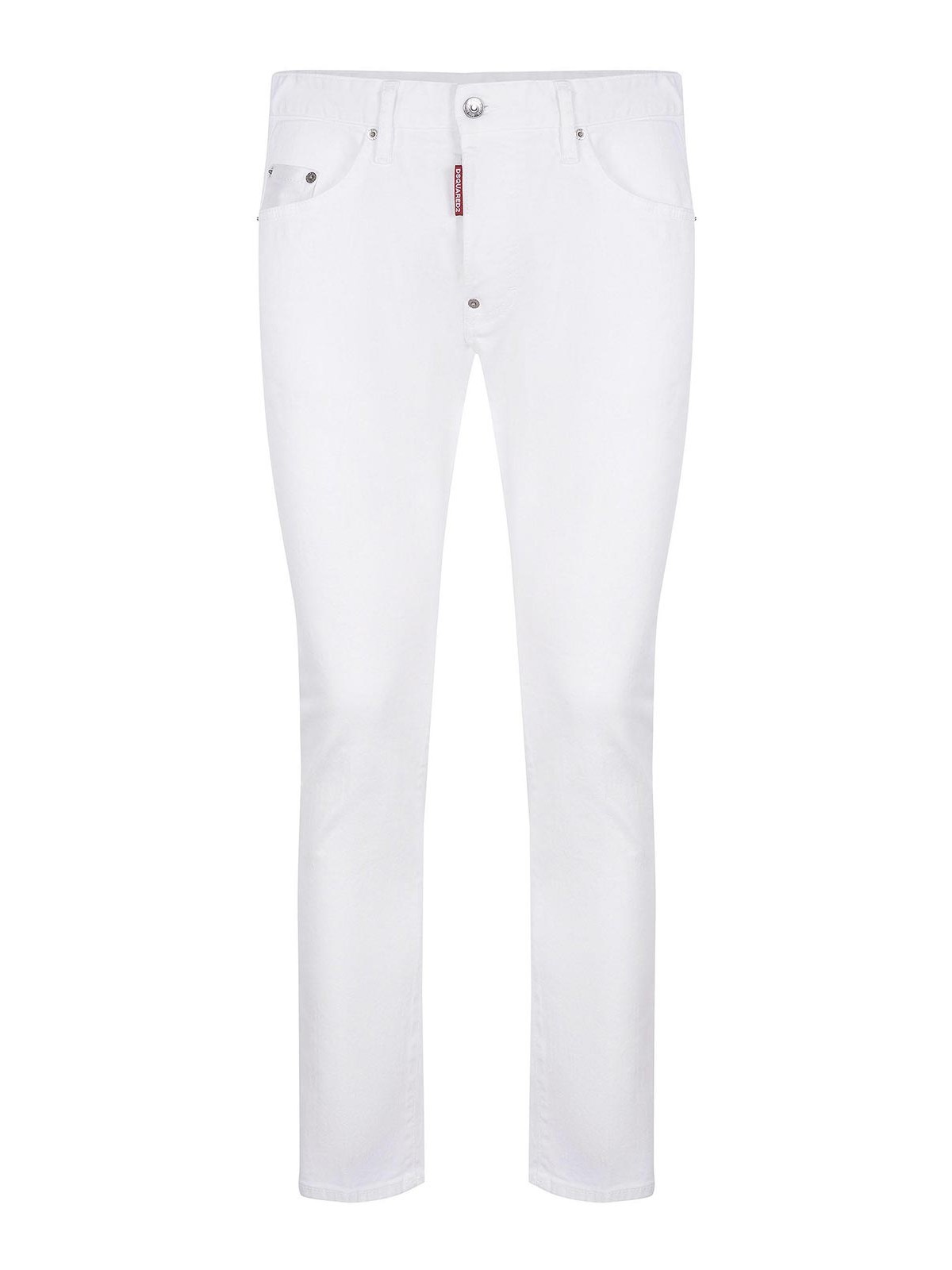 Dsquared2 jeans made from white denim, button closure, belt loops at the waist, iconic logo label applied on the front, tone-on-tone leather label with logo on the back, 98% cotton, 2% elastane