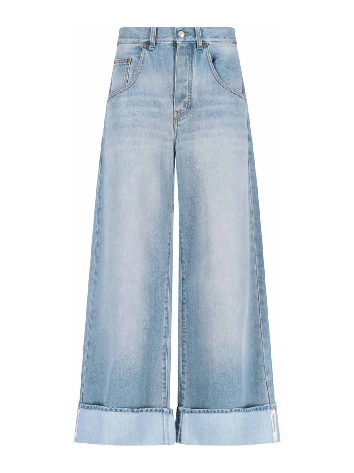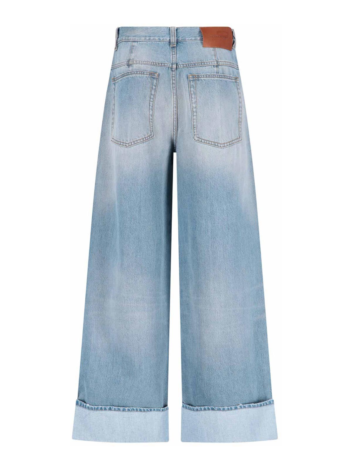 Ella jean Victoria Beckham jeans high waisted buttons belt loops five pocket model wide leg logo label on the back straight hem with reverses