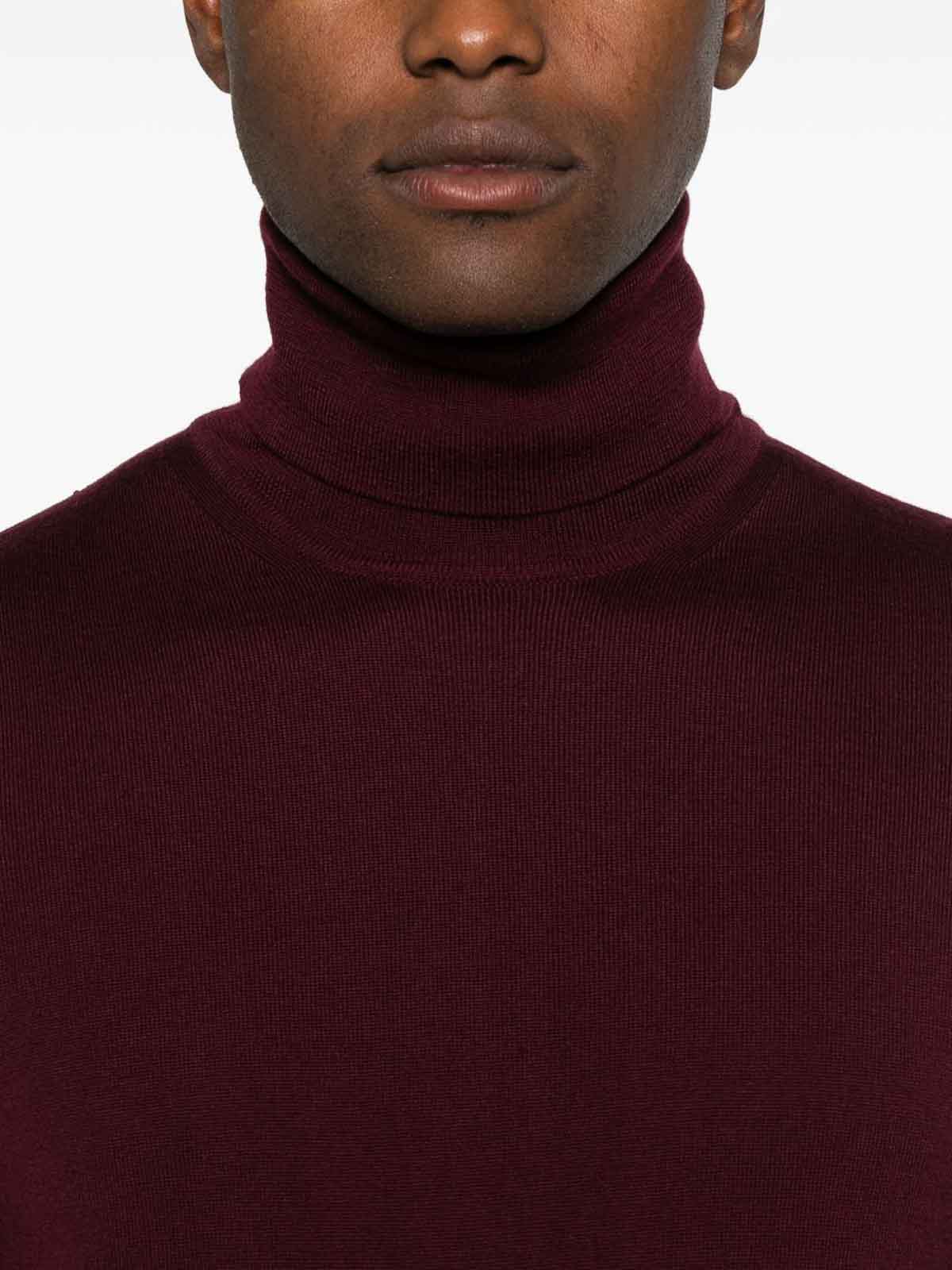 Red roll neck long sleeves ribbed cuffs and hem seam