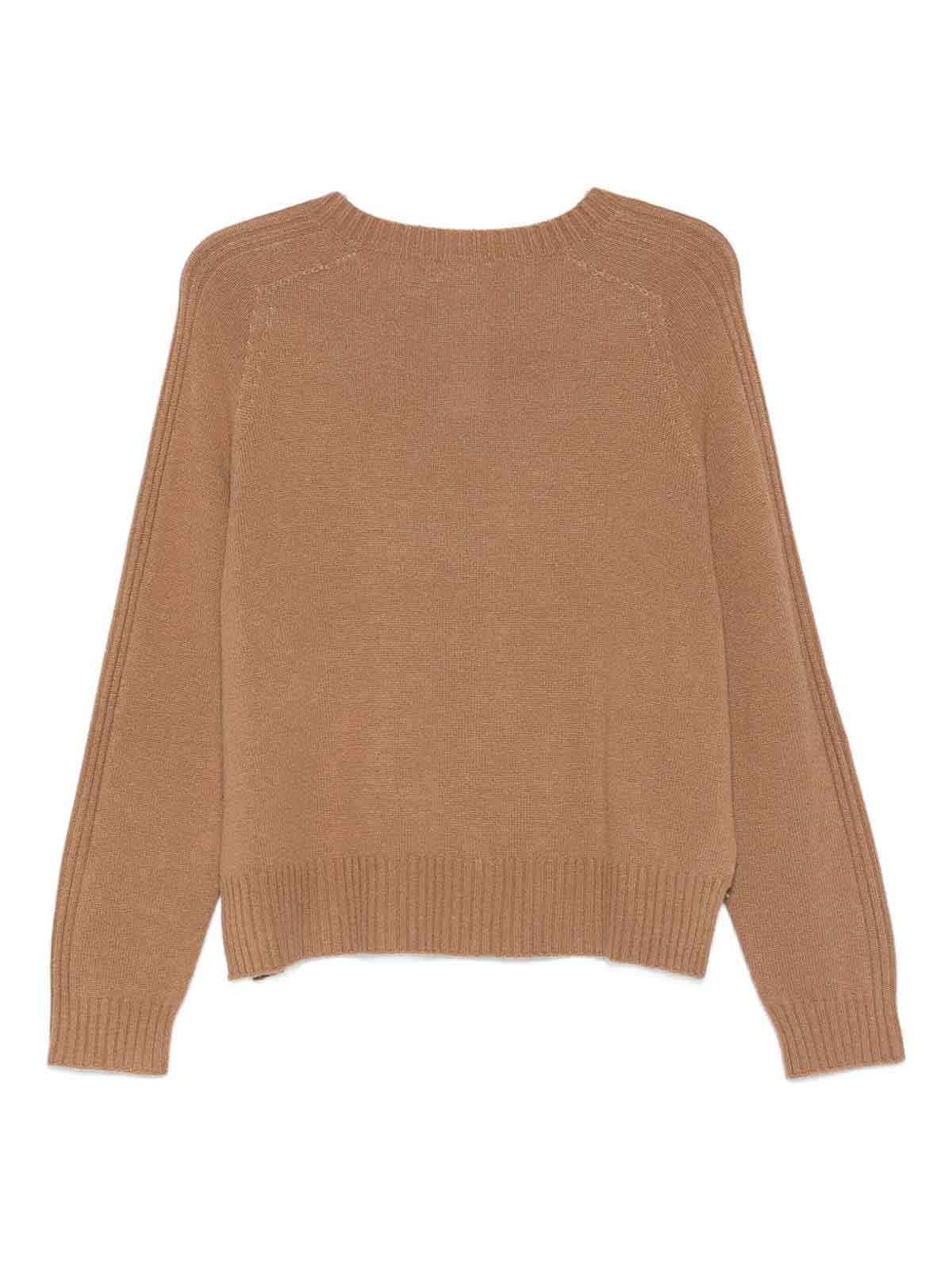 Brown heart motif round neck long sleeves ribbed hem ribbed cuffs