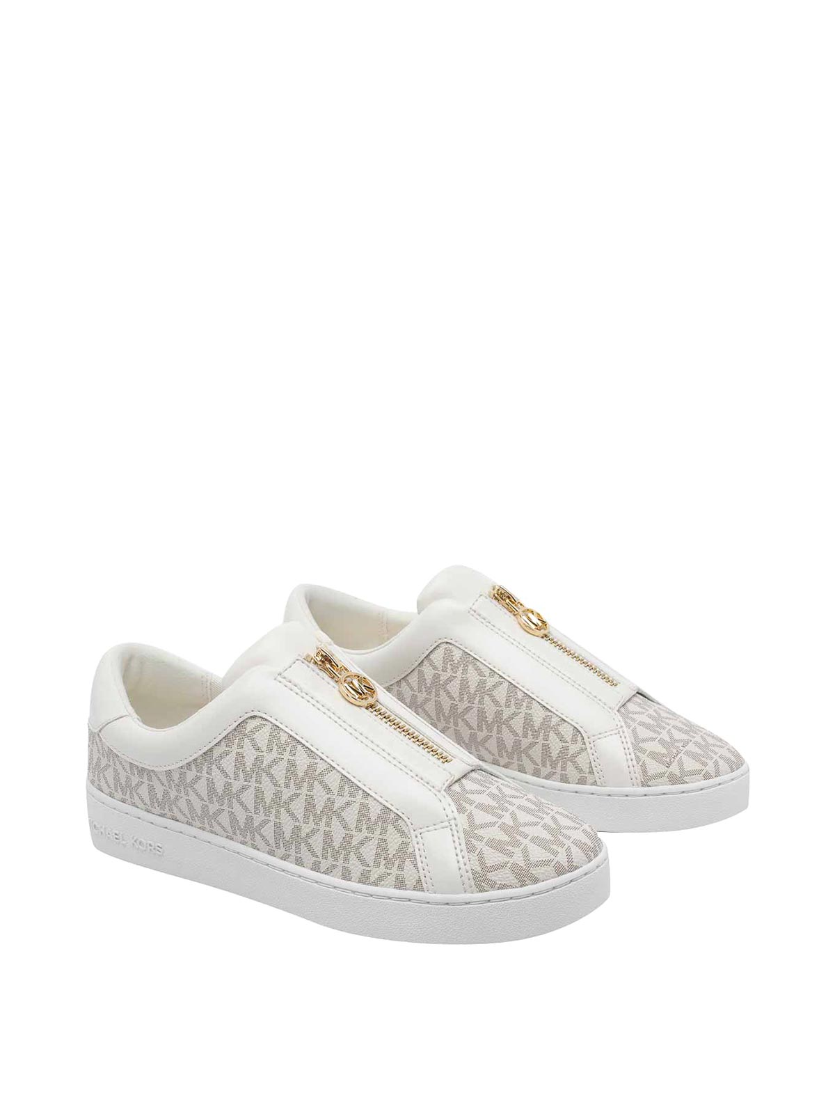 Michael michael kors white hayes sneakers, round toe, platform model, frontal zip closure, logo allover