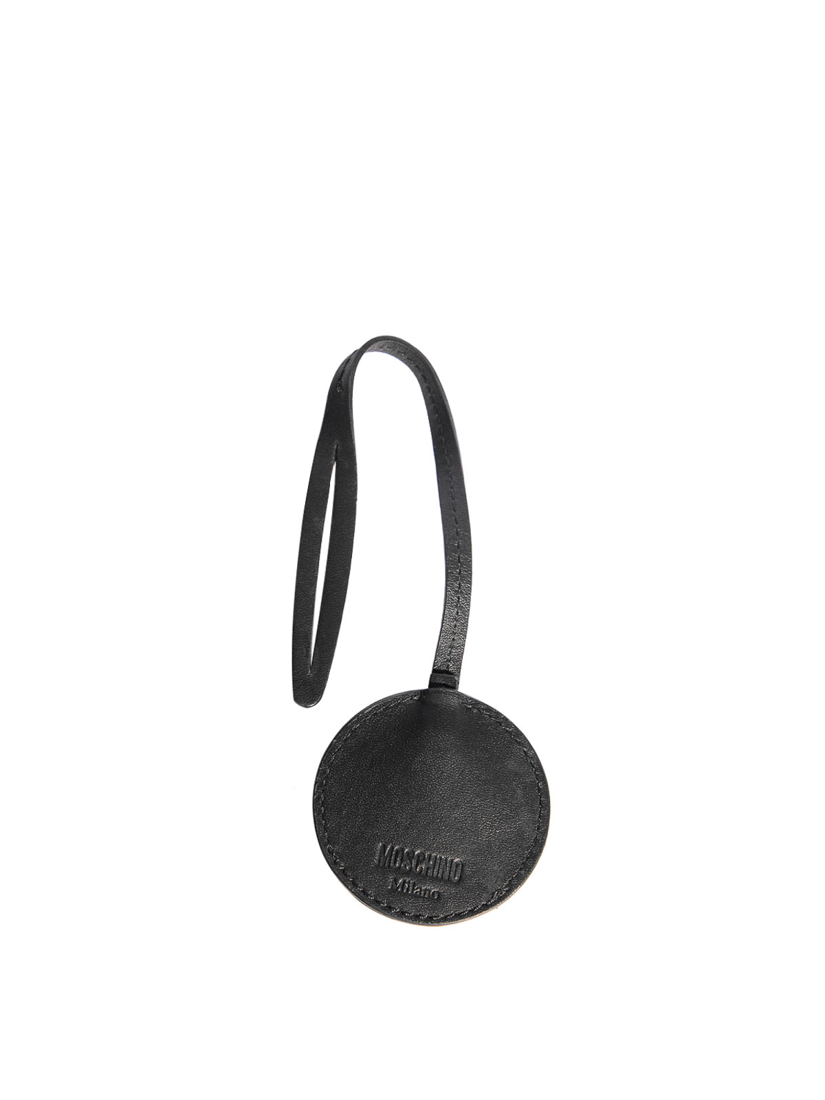Multicolored keychain for kids. Moschino keychain, finished in leather with a glossy Moschino bulldog print on the front. Moschino bulldog print, wrist strap, galvanized ring with engraved logo, debossed logo on the back. Color: Multicolored. 100% leather. Made in Italy.