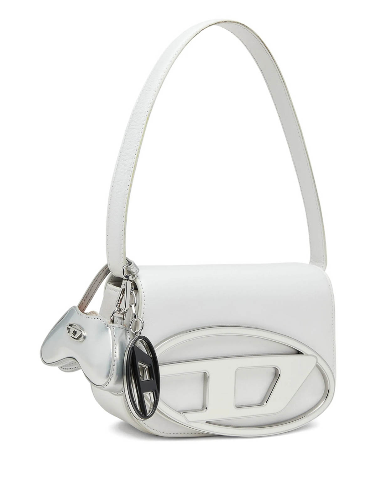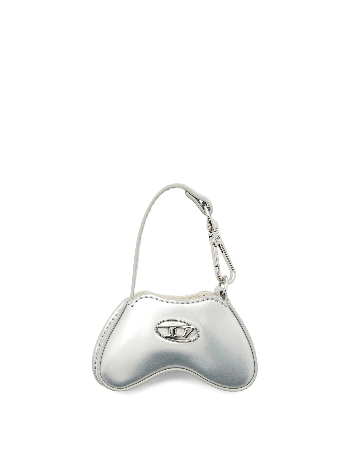 Silver polished finish topstitching lobster clasp fastening logo detail synthetic