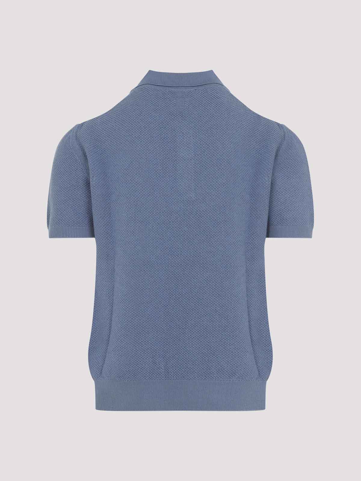 Canali avio blue cotton knit sweater. pure cotton avio blue sweater, classic polo collar, short sleeves, ribbed edges and hem, straight hem.