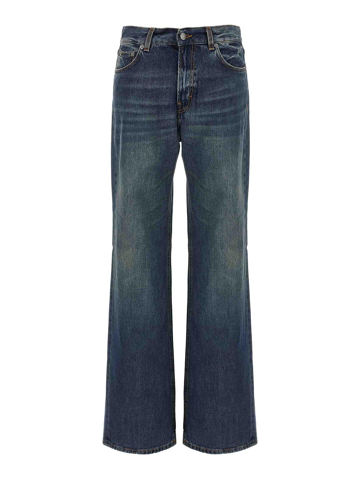 korea intense blue' cotton denim jeans with zip and button closure, five pockets, straight leg.