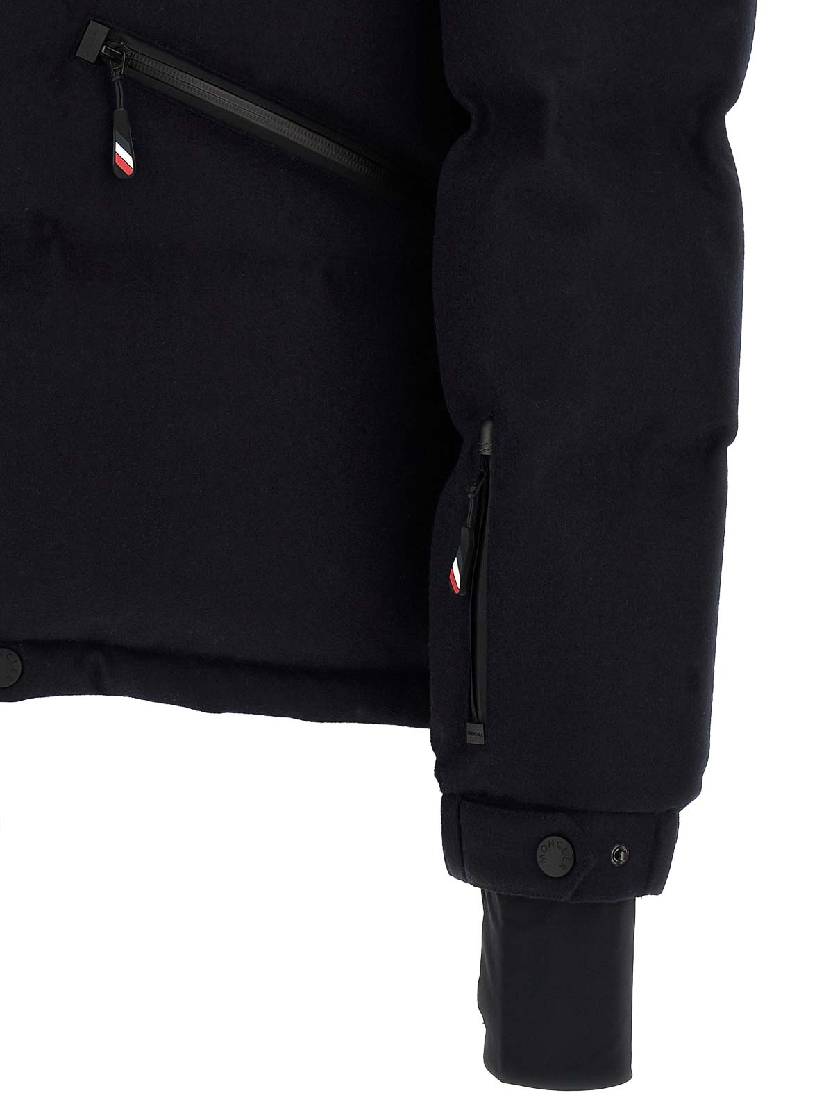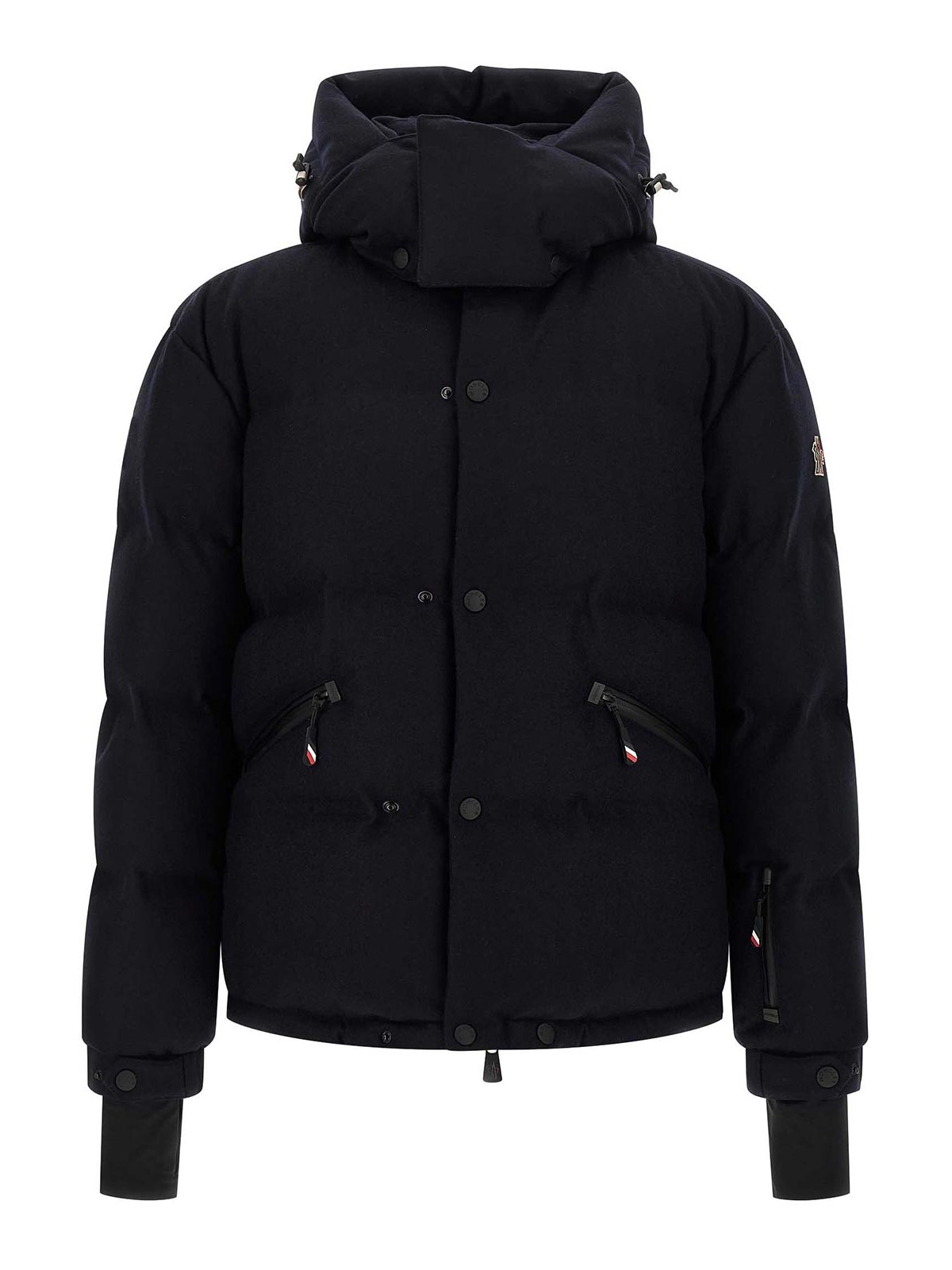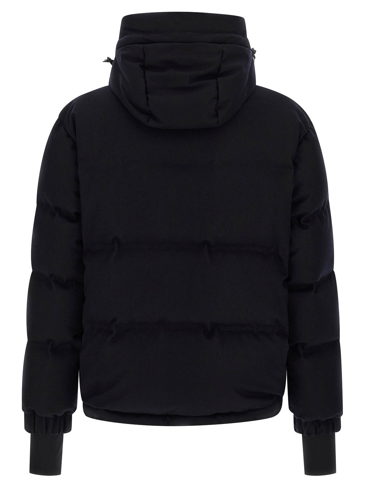 krun' ski jacket in 2l quilted technical wool flannel, micro ripstop lining with goose feather padding, adjustable and removable hood, standing collar, ykk aquaguard highly water-resistant zip closure and front snap buttons, pockets, long sleeves with adjustable elastic cuffs, windproof gaiter and applied logo patch, inner gaiter and drawstring on the hem.