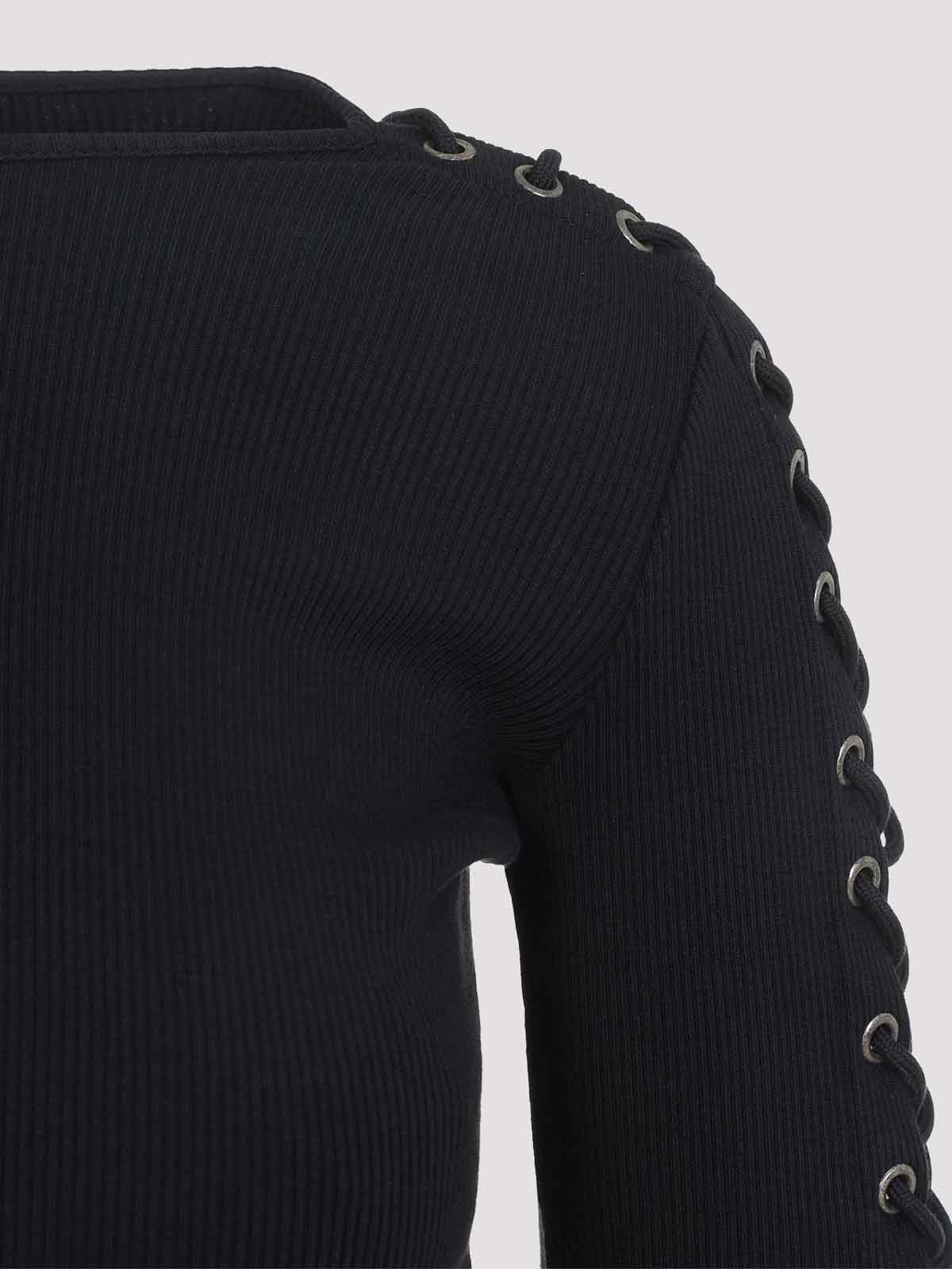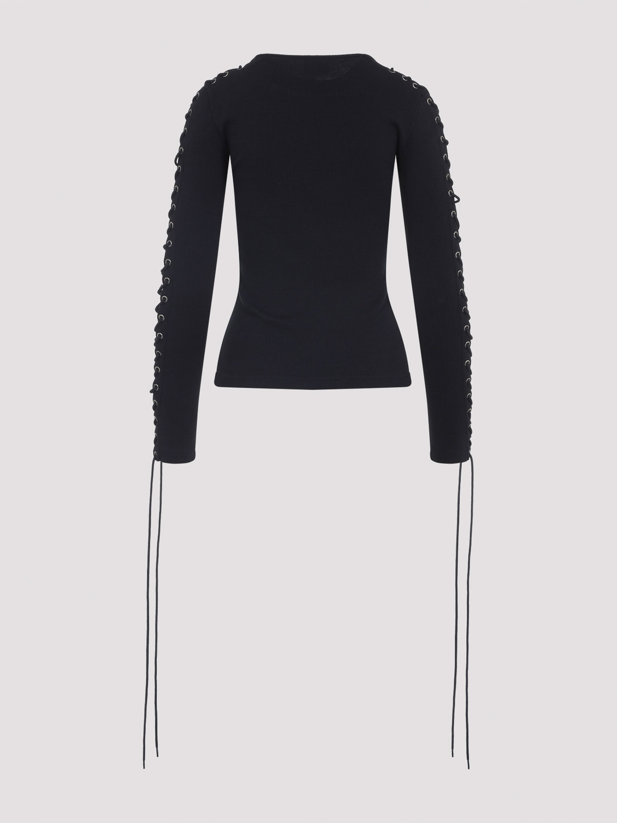 Balenciaga black lace, up long sleeves t, - shirt pure black T-shirt boat neck long sleeves tonal crisscross strap on the sleeves straight hem ribbed all, over