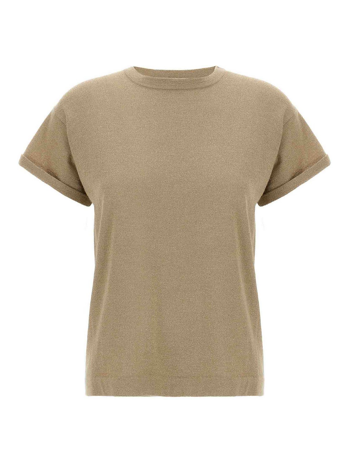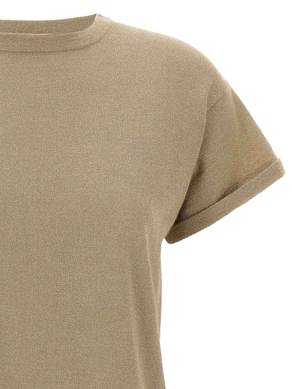 Cashmere and silk blend t-shirt with lam threads, crew neck, short sleeves with turn-up.