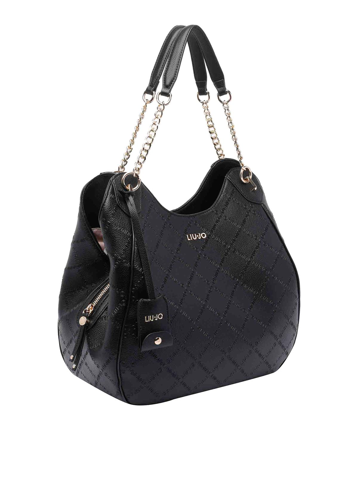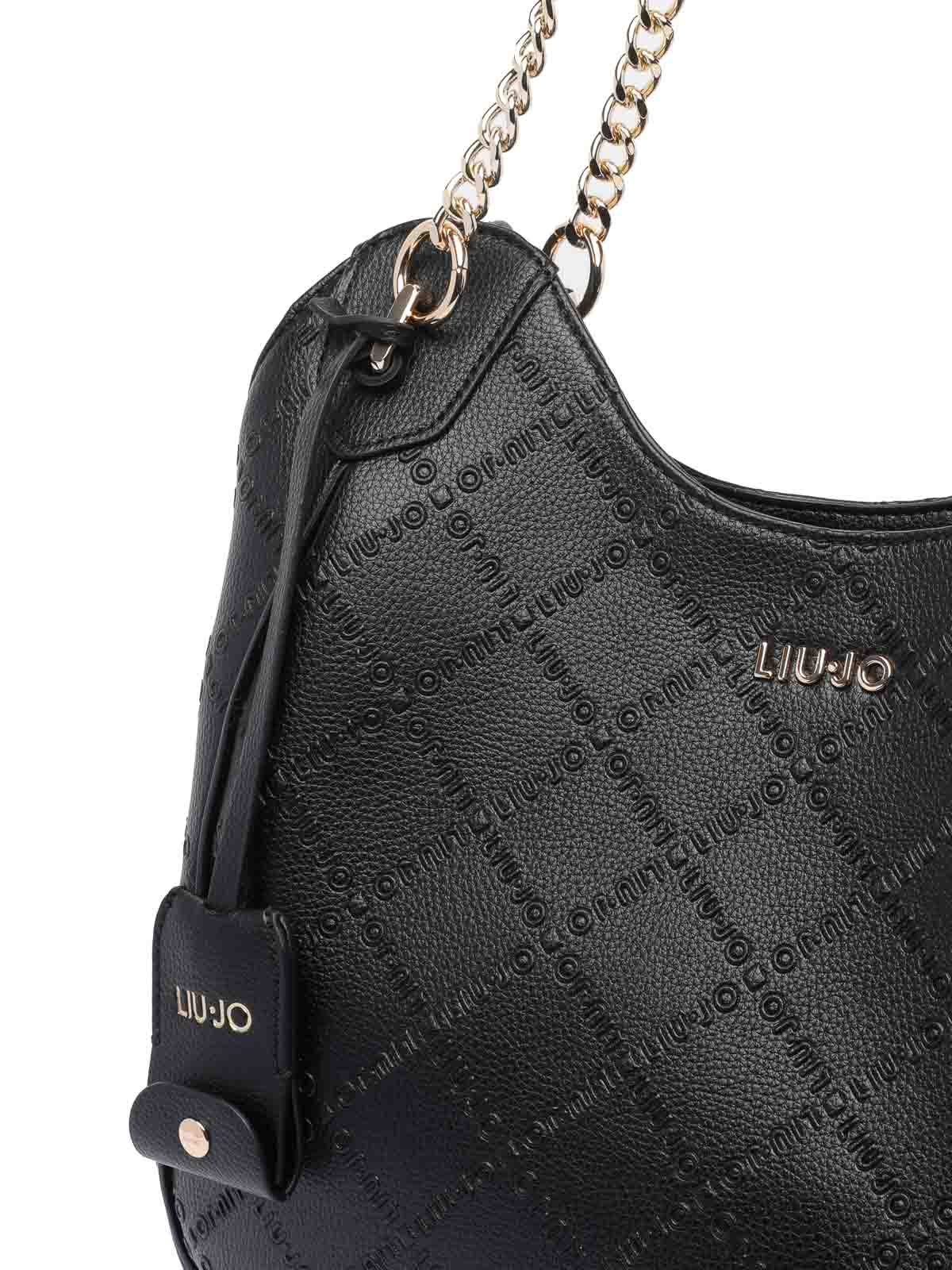Liu jo black large logo satchel bag sections magnetic zipped pocket shoulder strap frontal mini logo