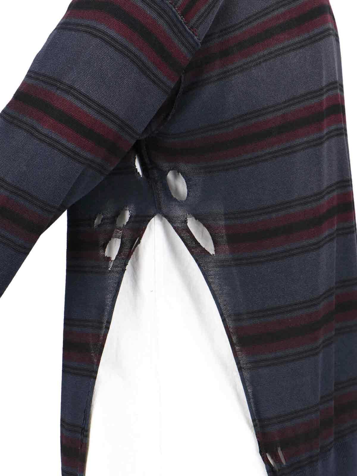 Balenciaga logo layered sweater, in multicolor cotton blend, destroyed effect, crew neck, dropped shoulders, striped pattern, front logo embroidery, maxi side slit detail, ribbed finishes, straight hem.