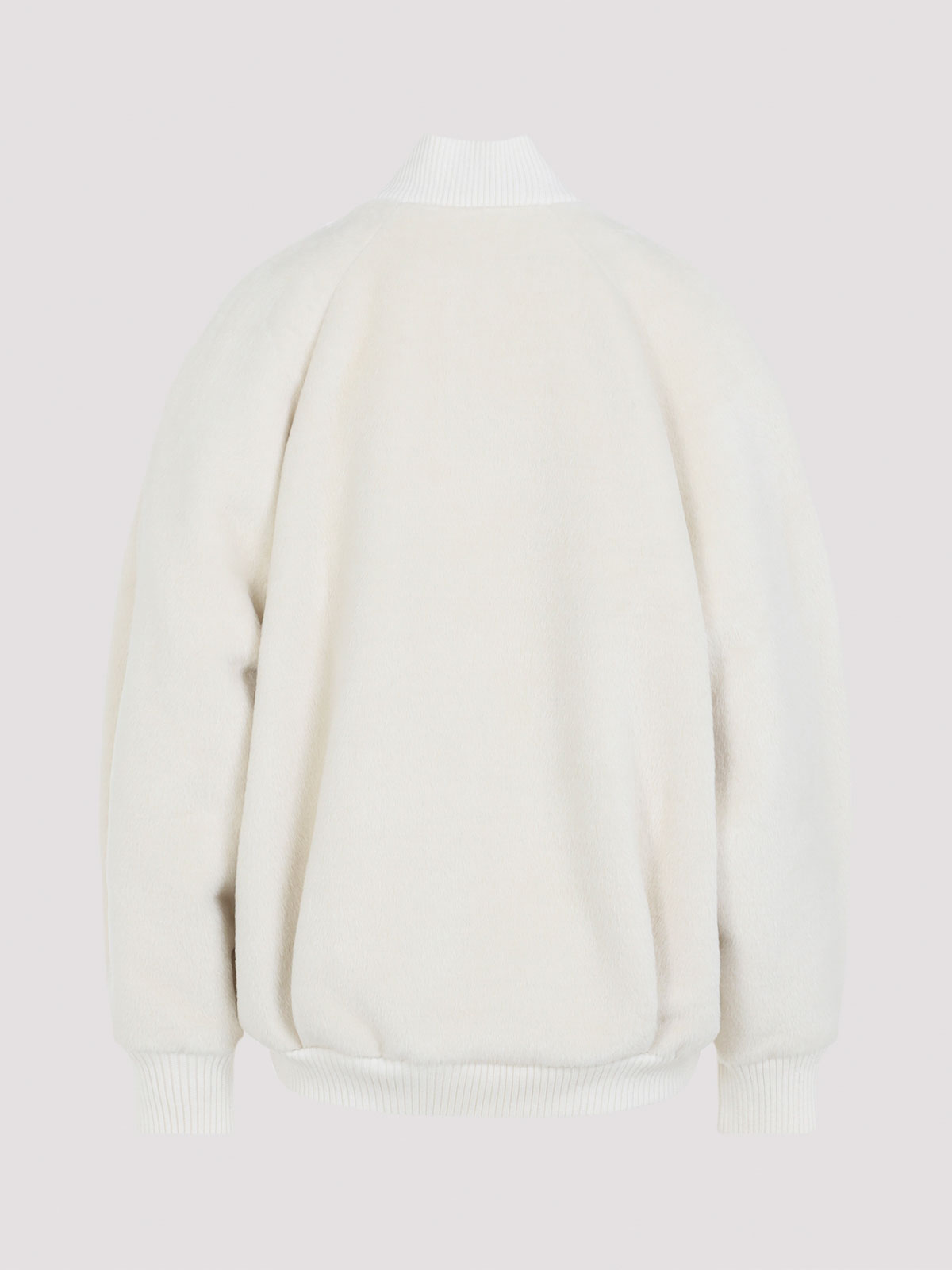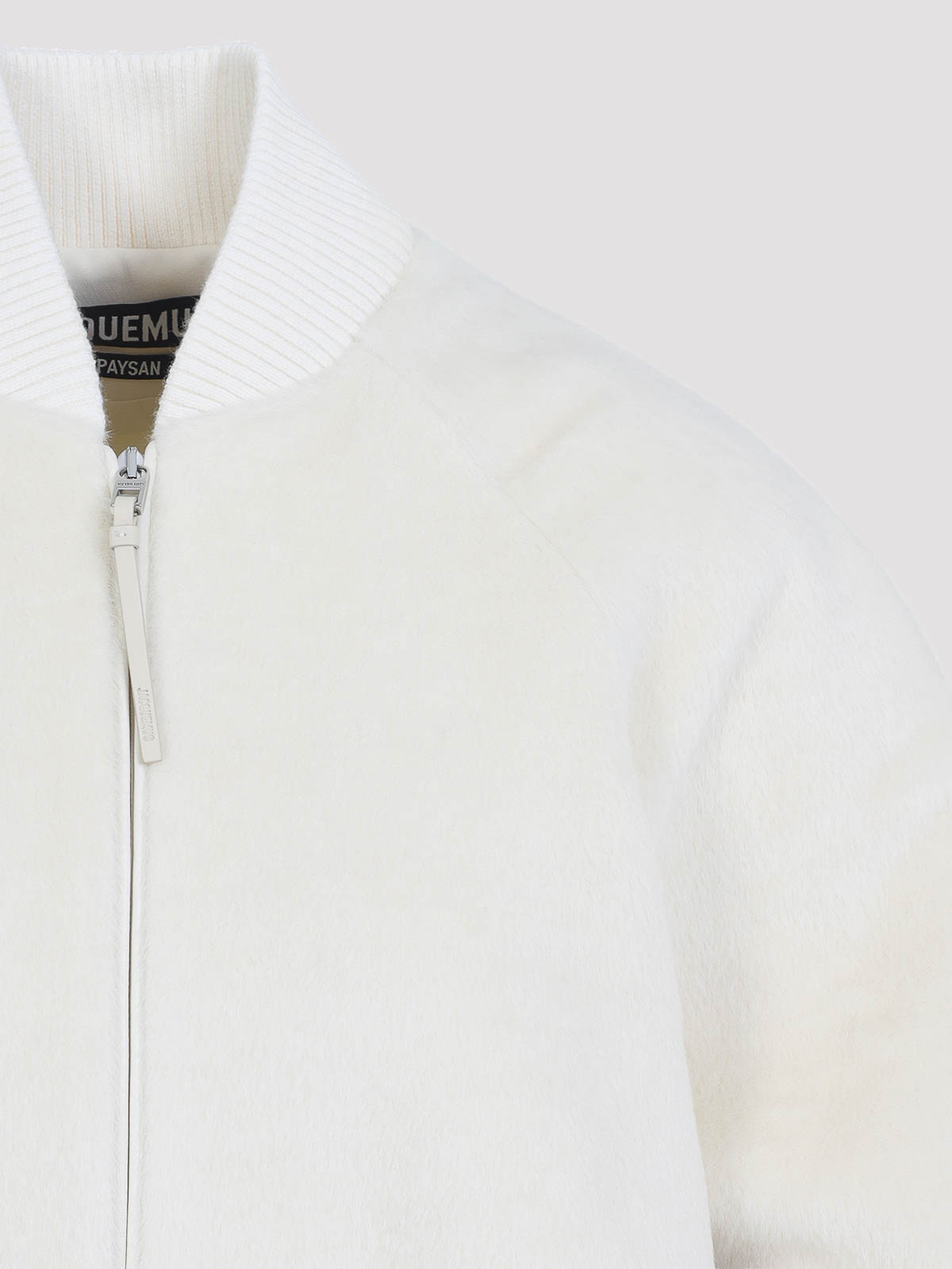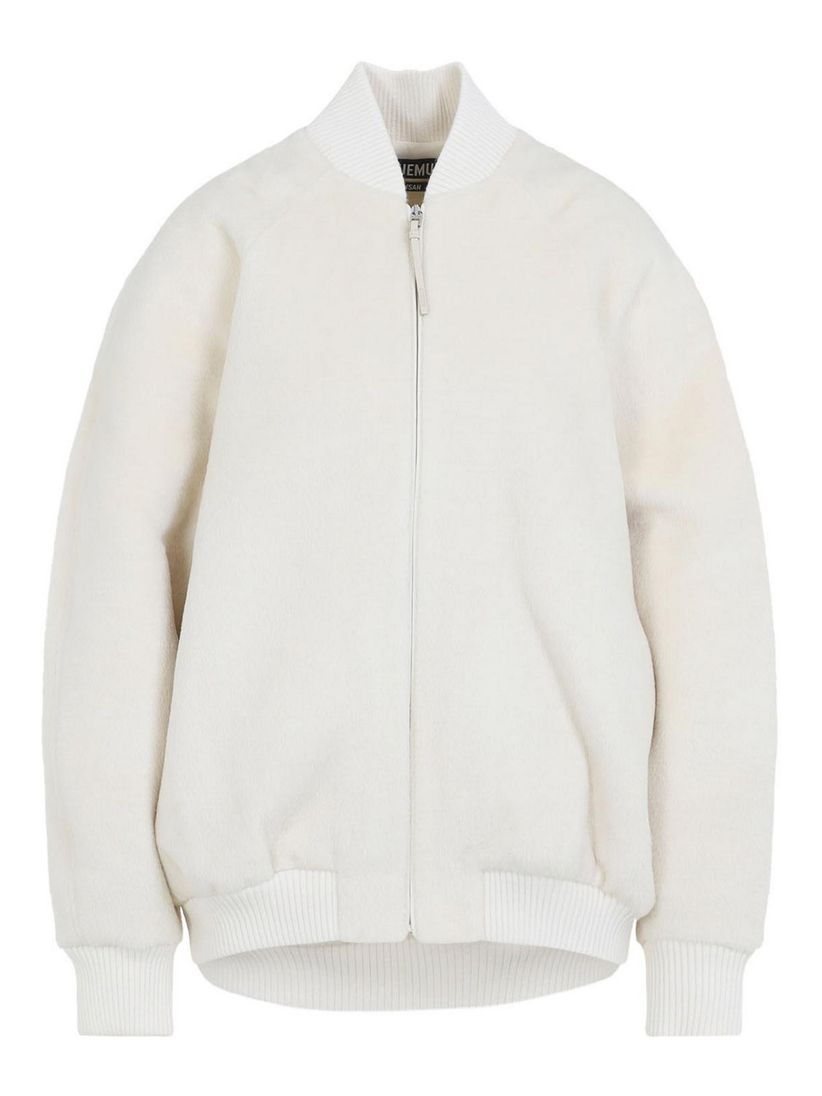 Jacquemus le blouson pilu white jacket crafted from white round neckline zip raglan long sleeves ribbed edges