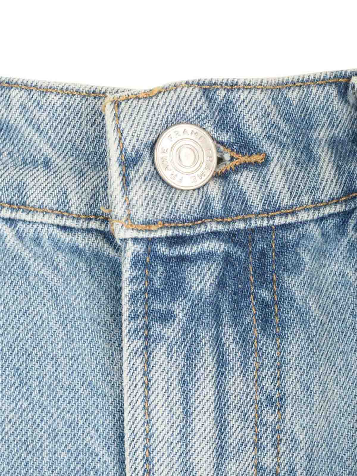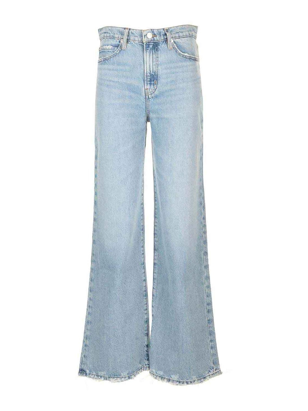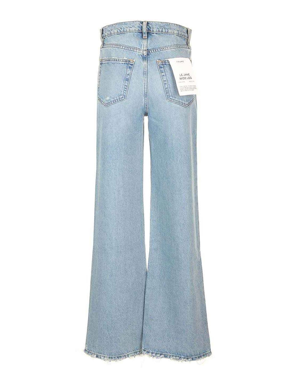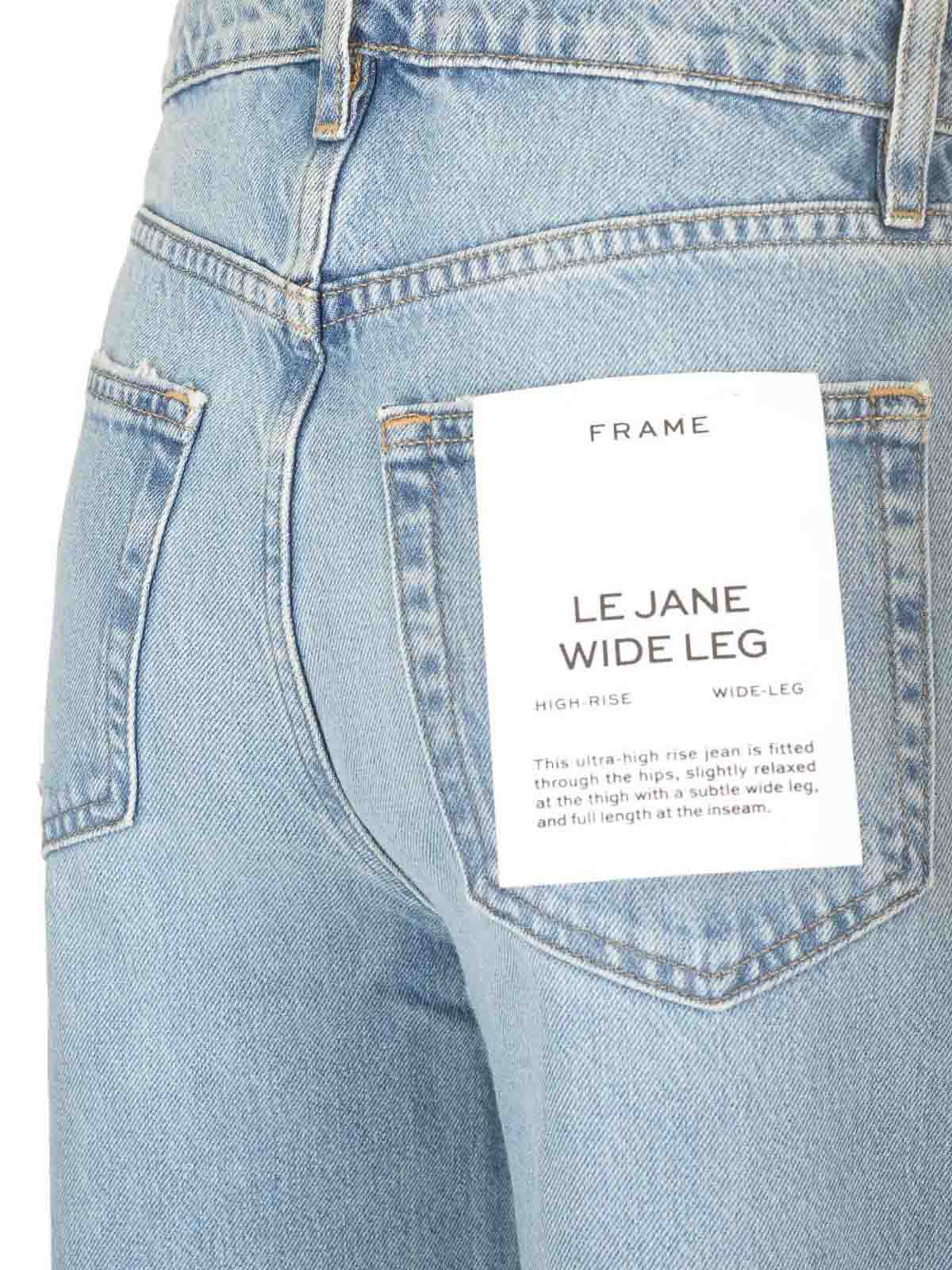 le jane jeans by frame with wide leg and high waist, tight on the hips and relaxed on the leg, zip and button fastening, presence of 5 pockets.