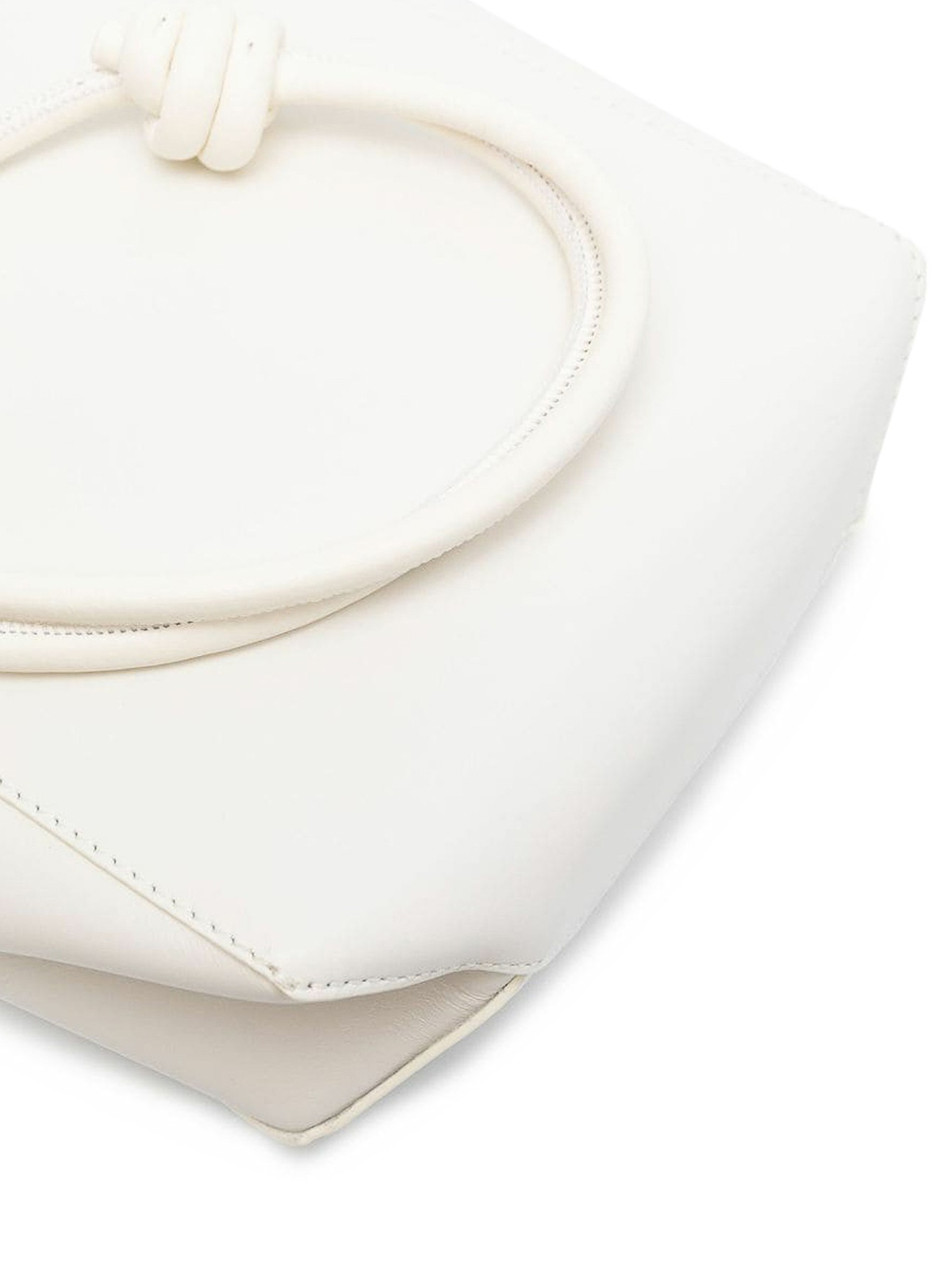 Shoulder bag in white calfskin, details with embossed nodologist on the front, single shoulder strap and main compartment.