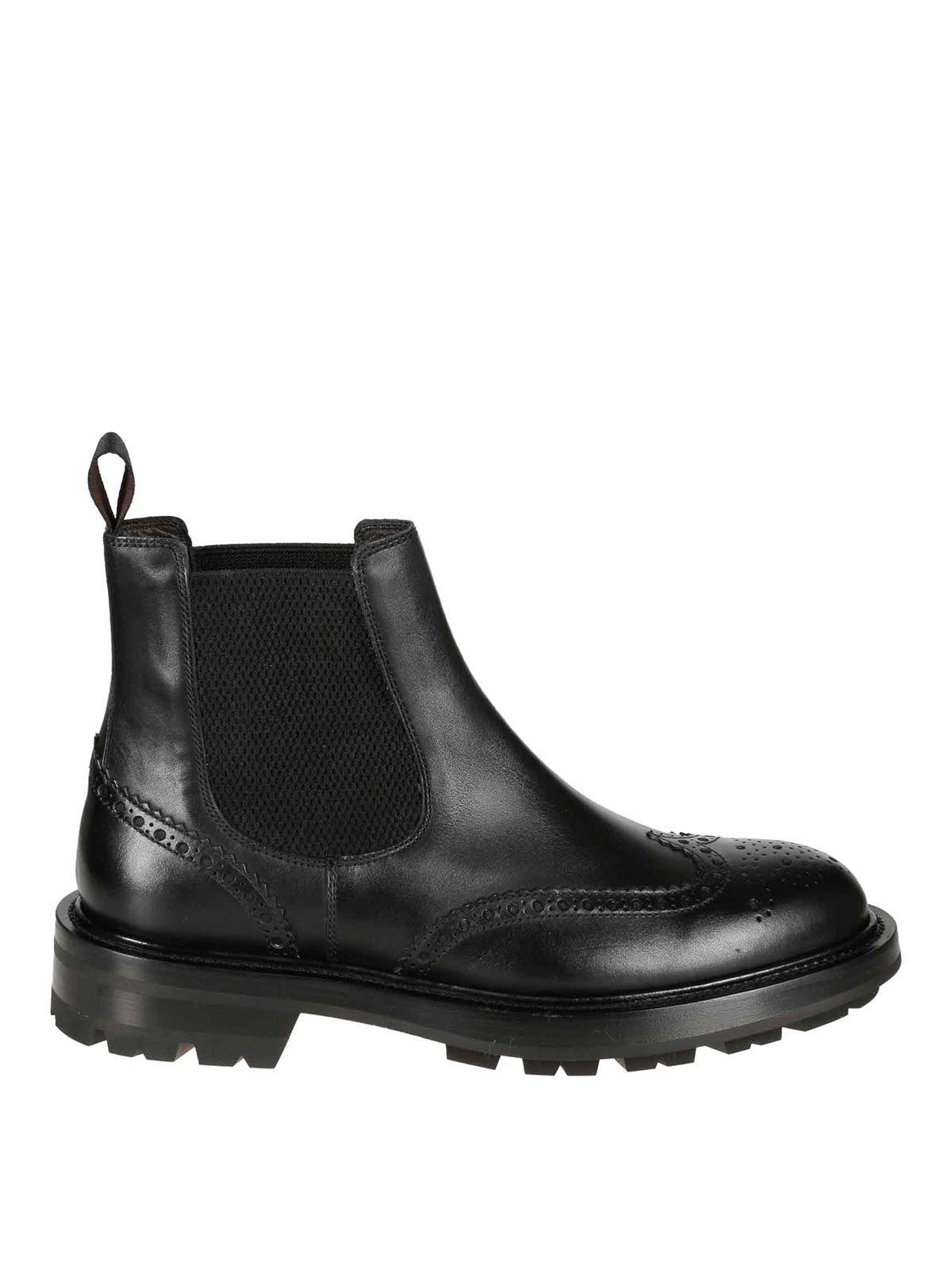 Barrett ankle boot - in black calfskin with side elastic and tie rod, the upper is embellished with brogue decorations, the extra-light with welt and leather lining guarantees great lightness and flexibility for exceptional comfort. The fit of this model is regular, upper and