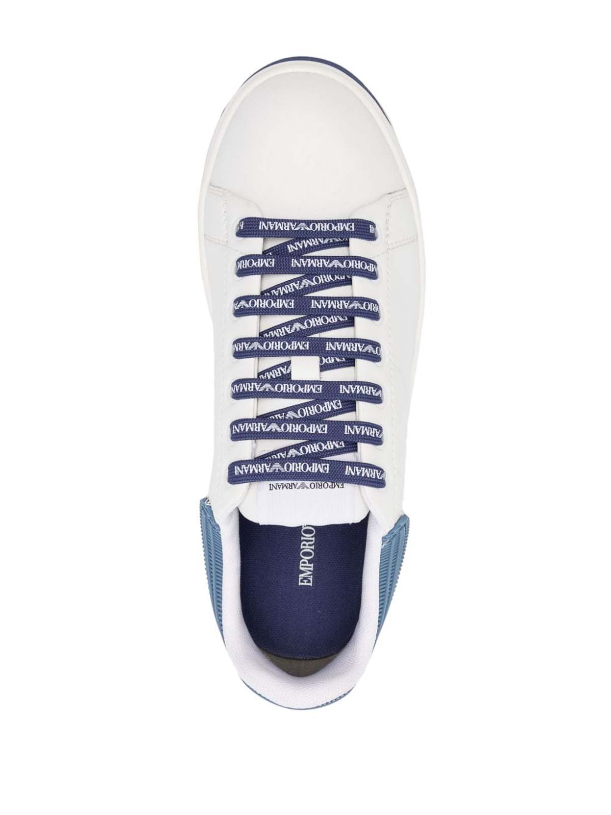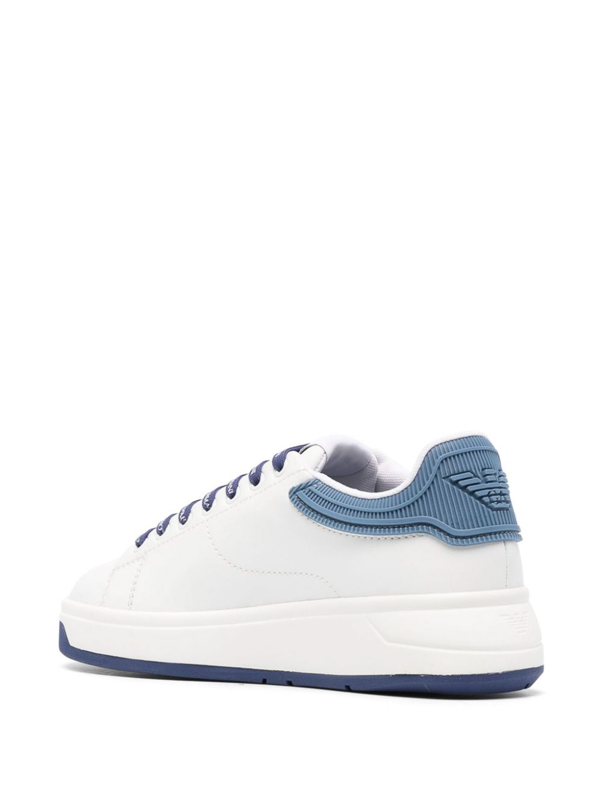 Two-tone sneakers from emporio armani featuring white blue two-tone design logo patch at the tongue contrasting branded counter logo-print laces round toe lace-up and ridged