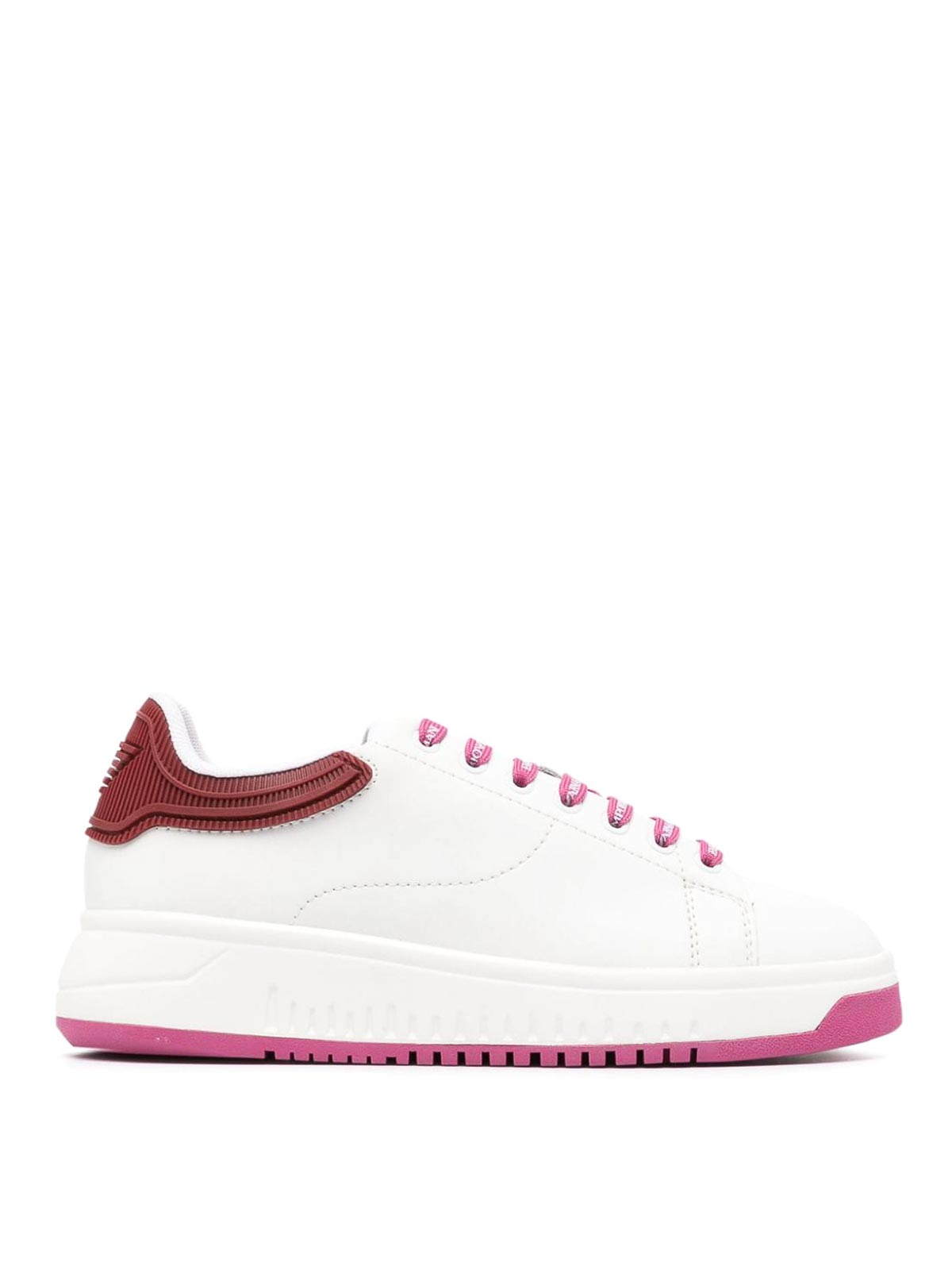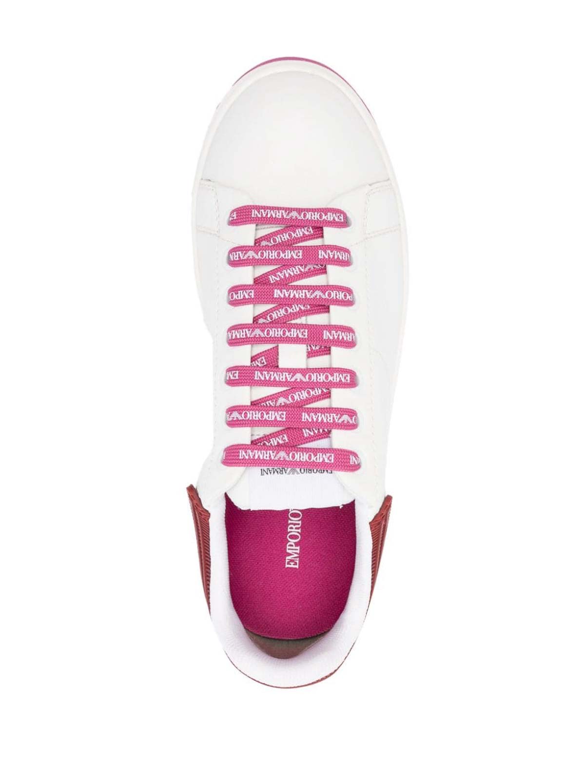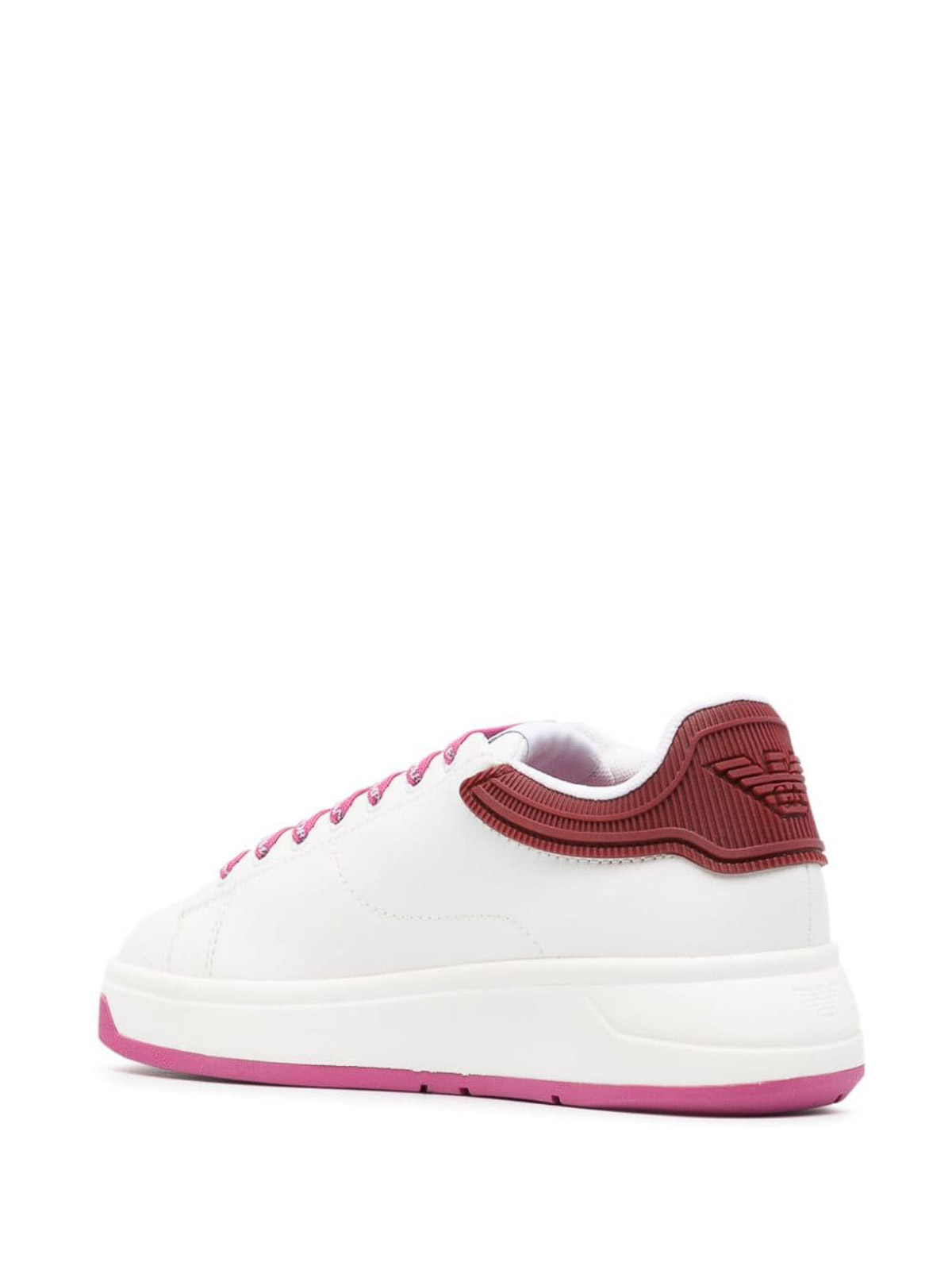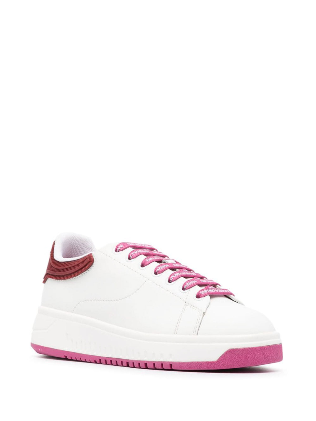 Two-tone sneakers from emporio armani featuring white pink two-tone design logo patch at the tongue contrasting branded counter logo-print laces round toe lace-up and ridged